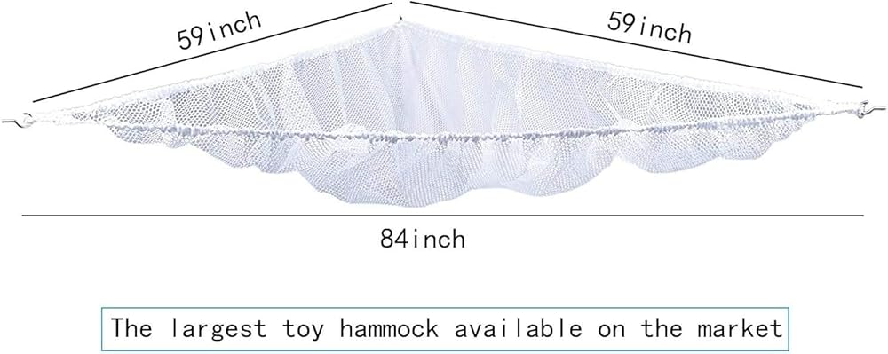 مادة قابلة للتمدد، الأبعاد: 2.13 × 1.5 × 1.5 م (84 × 59 × 59 بوصة)، يمكن أن تستوعب العناصر الكبيرة، تأتي مع مثبتات جدارية جافة ومسامير خطافية متضمنة لتناسب زاوية أي غرفة، إنها أكبر أرجوحة متاحة على السوق