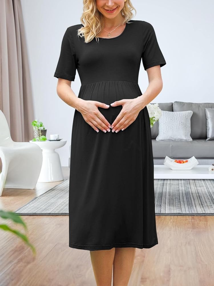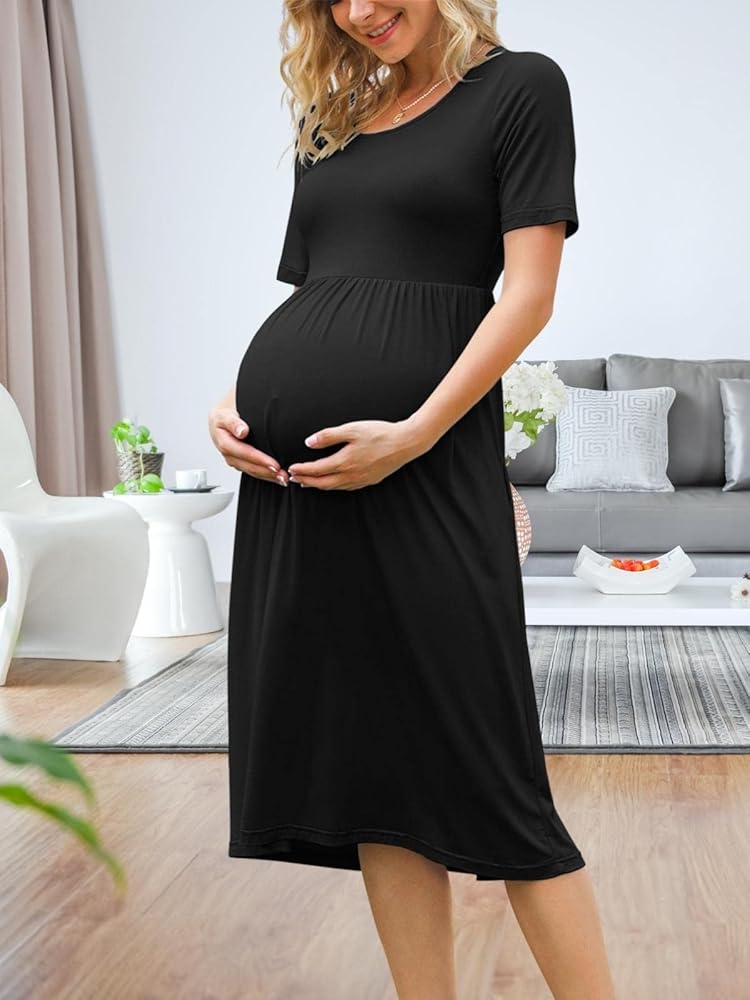 • سواء كنتِ في مرحلة ما قبل الحمل أو في أشهر الحمل، فإن هذا الفستان سيجعلك تشعرين بالثقة مع بطنك. خصر مرن إمبراطوري، على الجانبين مع جيوب، مظهر أنيق للغاية وأنيق. تناسبها بشكل جميل مع مساحة للنمو. بالتأكيد احصل على هذا!