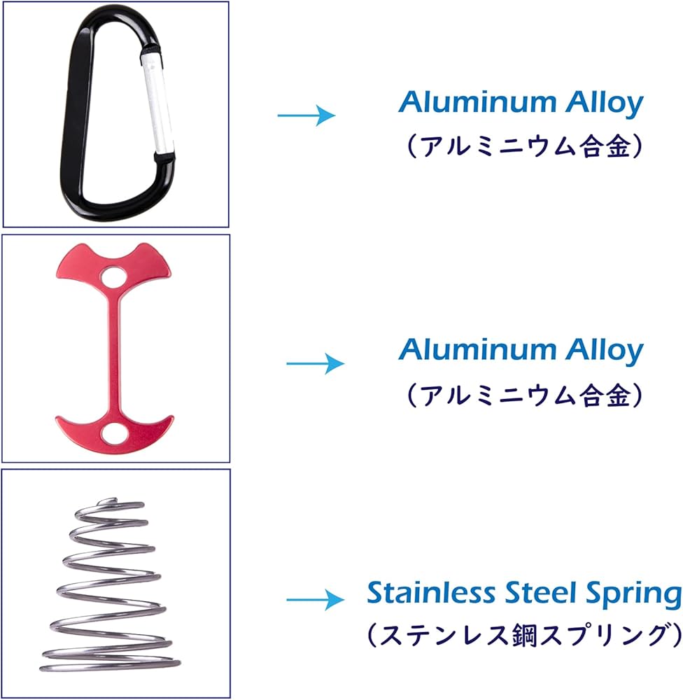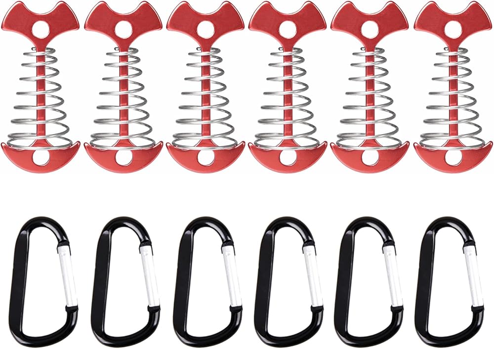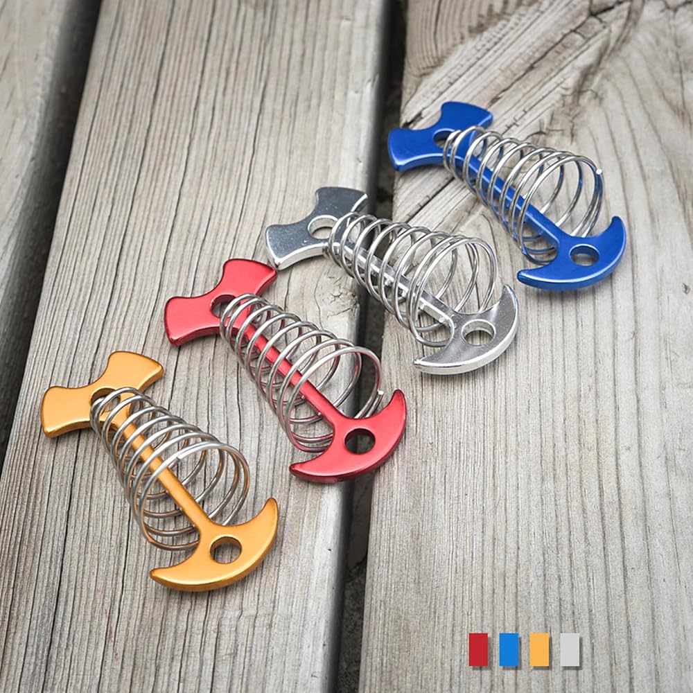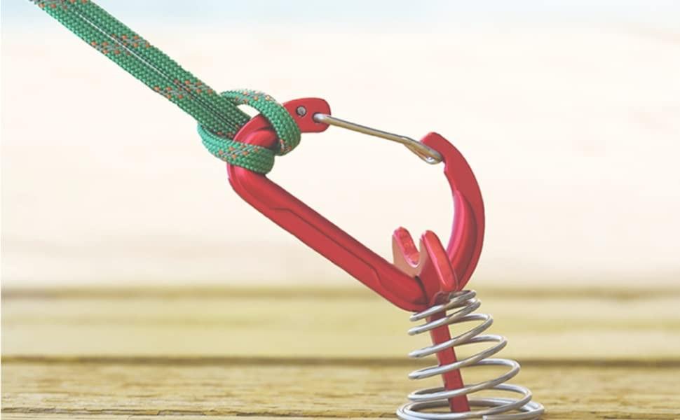 ✅ التصميم - خطاف حبل التخييم المزود بزنبرك يجعل نقطة ارتكاز أكثر استقرارًا. الفتحة مقاس 0.3 سم مناسبة لمعظم حبال الخيمة.