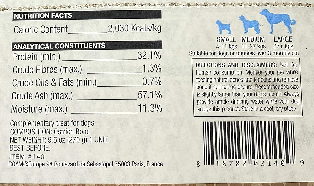 THE BOSS-TRICH - عظم النعام قليل الدسم قوي للغاية ولكنه خفيف جدًا بحيث يطفو. رائعة للكلاب المتوسطة والكبيرة.