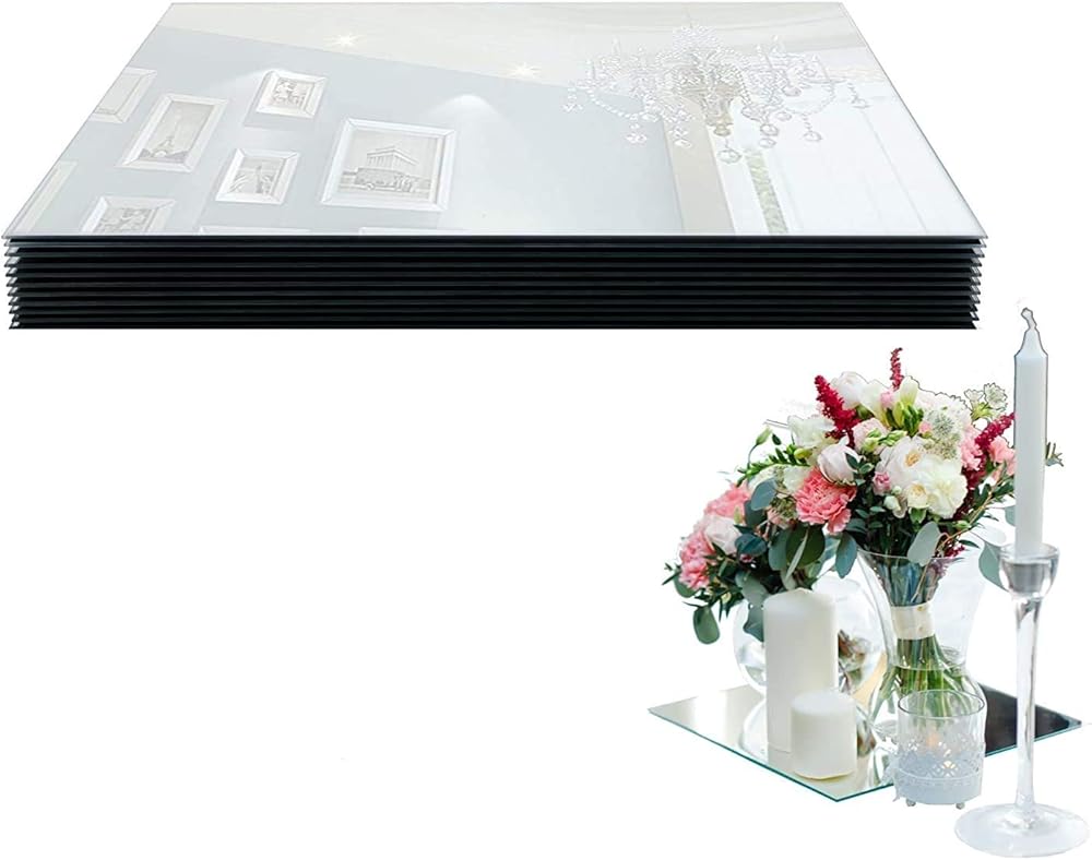 • SET of 12 simple rectangle MIRROR trays perfect for table centerpieces. They will make them elegant by reflecting beauty of your floral arrangements, candles and natural light.