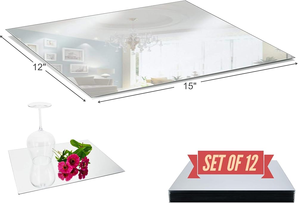 لوحات مرآة مقاس 30.48 × 38.1 سم مع حافة مستديرة (مجموعة من 12) - صينية مرآة زجاجية مستطيلة، قاعدة مثالية للقطع المركزية لطاولات الزفاف، وتزيين الحفلات، والشموع