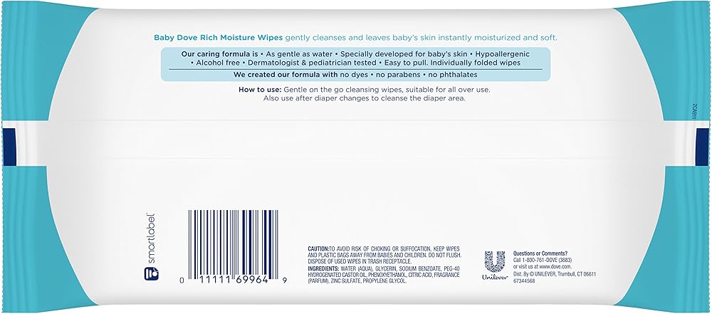 • مناديل مبللة للأطفال لا تسبب الحساسية وخالية من الكحول توفر ترطيبًا فوريًا، تاركًا بشرة طفلك ناعمة