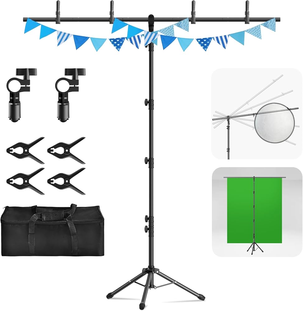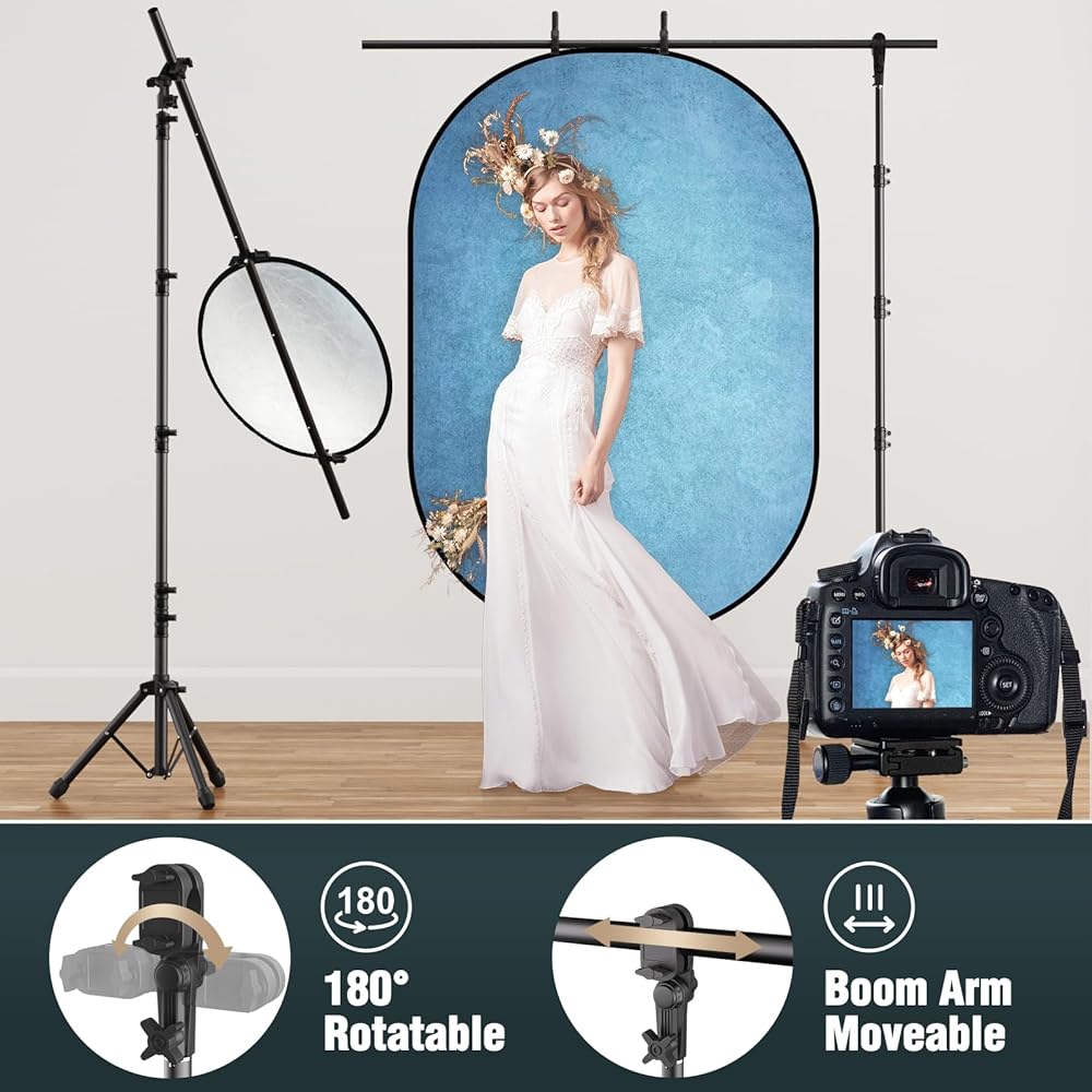 حامل خلفية قابل للتعديل من إيمارت مع مقبض - حامل أذرع على شكل حرف T 2 في 1 - إطار دعم خلفية التصوير الفوتوغرافي المحمول لالتقاط الصور مع مشبك القرص، حامل خلفية عاكس منبثق