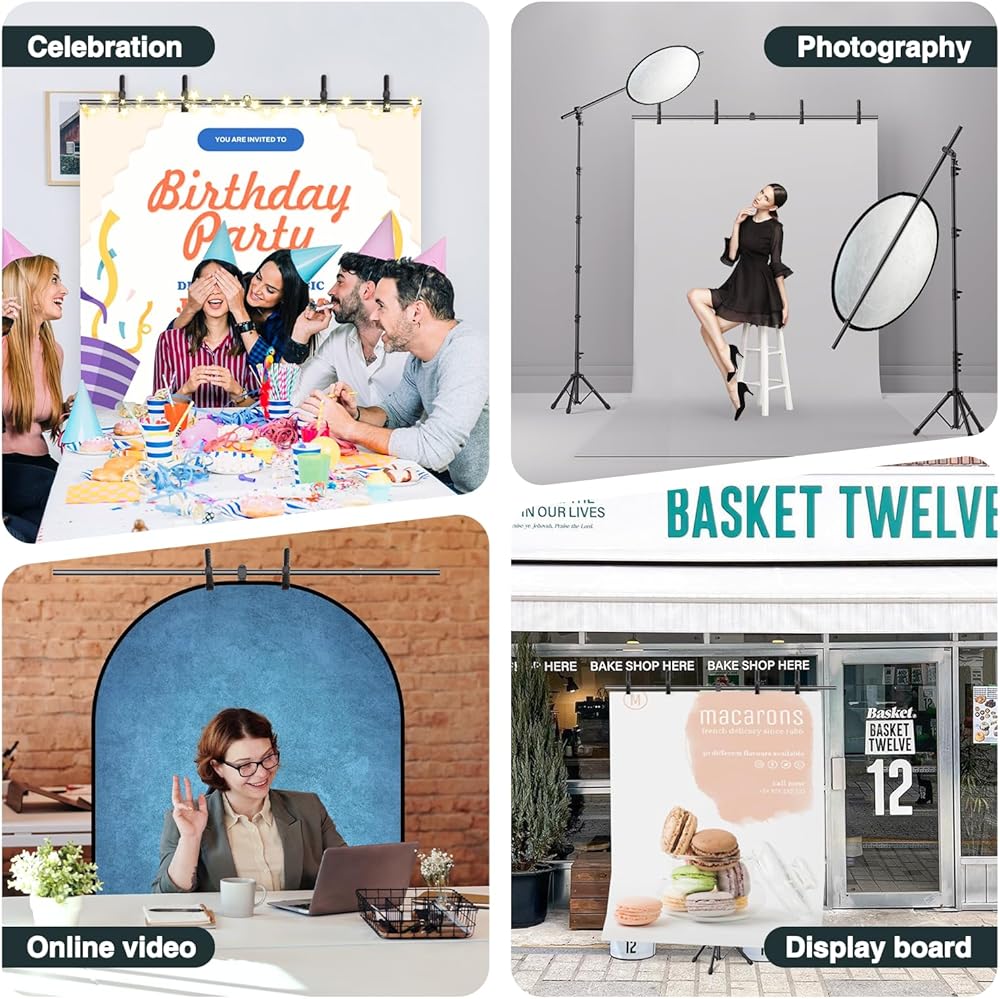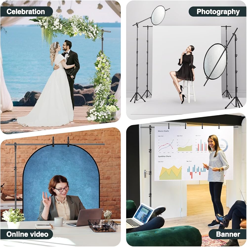【متعدد الاستخدامات للصور والمناسبات】سواء كنت ستحمل خلفية أو عاكسًا لصورتك الفوتوغرافية أو تنشئ خلفية فريدة لحفلاتك، فإن الحامل المرن يمكنه التعامل معه بسهولة في مناسبات مختلفة.