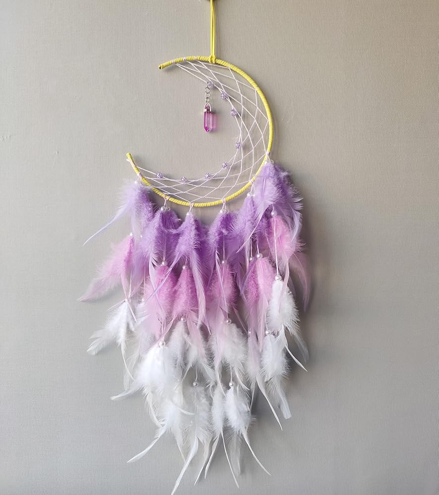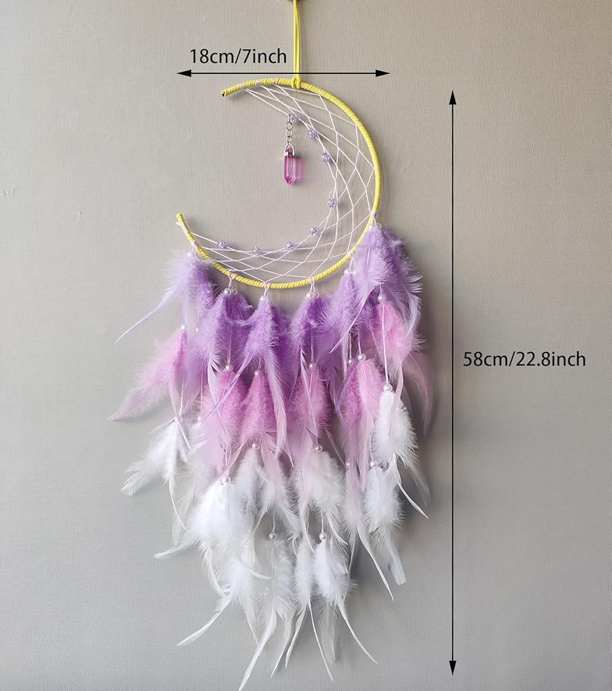 صائد الأحلام المصنوع يدويًا: مصنوع من خرز ايه بي اس، وشبكة منسوجة يدويًا، وقلادة فيروزية، وحبل إخفاء، وريش وطوق حديدي. جميع كاترز الأحلام مصنوعة على يد حرفيين منسوجين بالتقنيات اليدوية التقليدية.