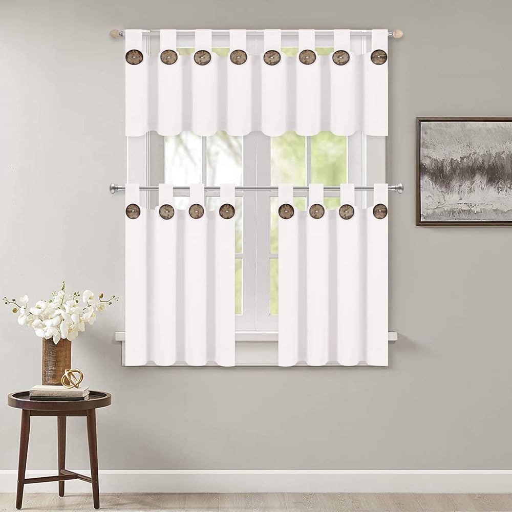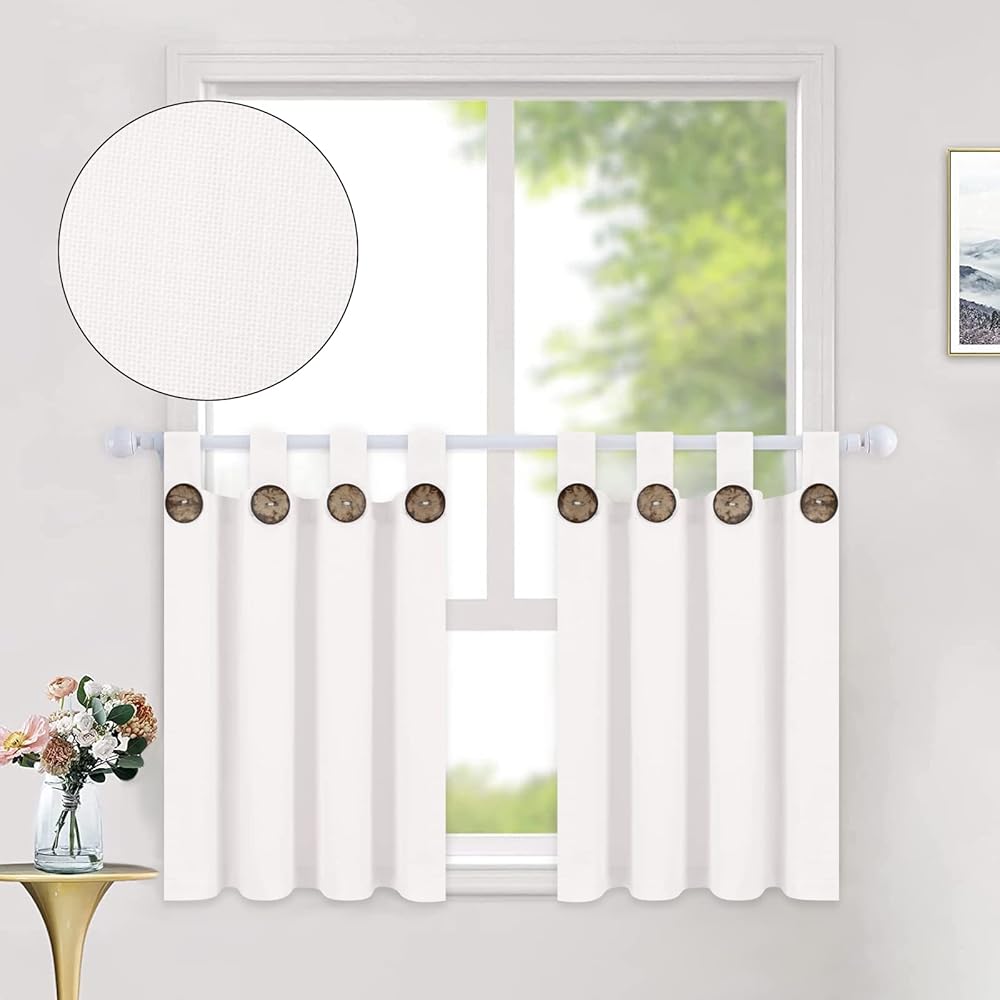 خامة فاخرة: ستائر المطبخ البيضاء عالية الجودة هذه مصنوعة من نسيج مزيج القطن الطبيعي ذو النسيج المفتوح، ناعمة ومتينة، مادة طبيعية وصحية تجعل الألواح أكثر ثنيًا وجمالاً. ستائر المزرعة مصنوعة بحرفية ممتازة ومقطعة بشكل أنيق، وليس من السهل أن تتآكل أو تتلاشى.