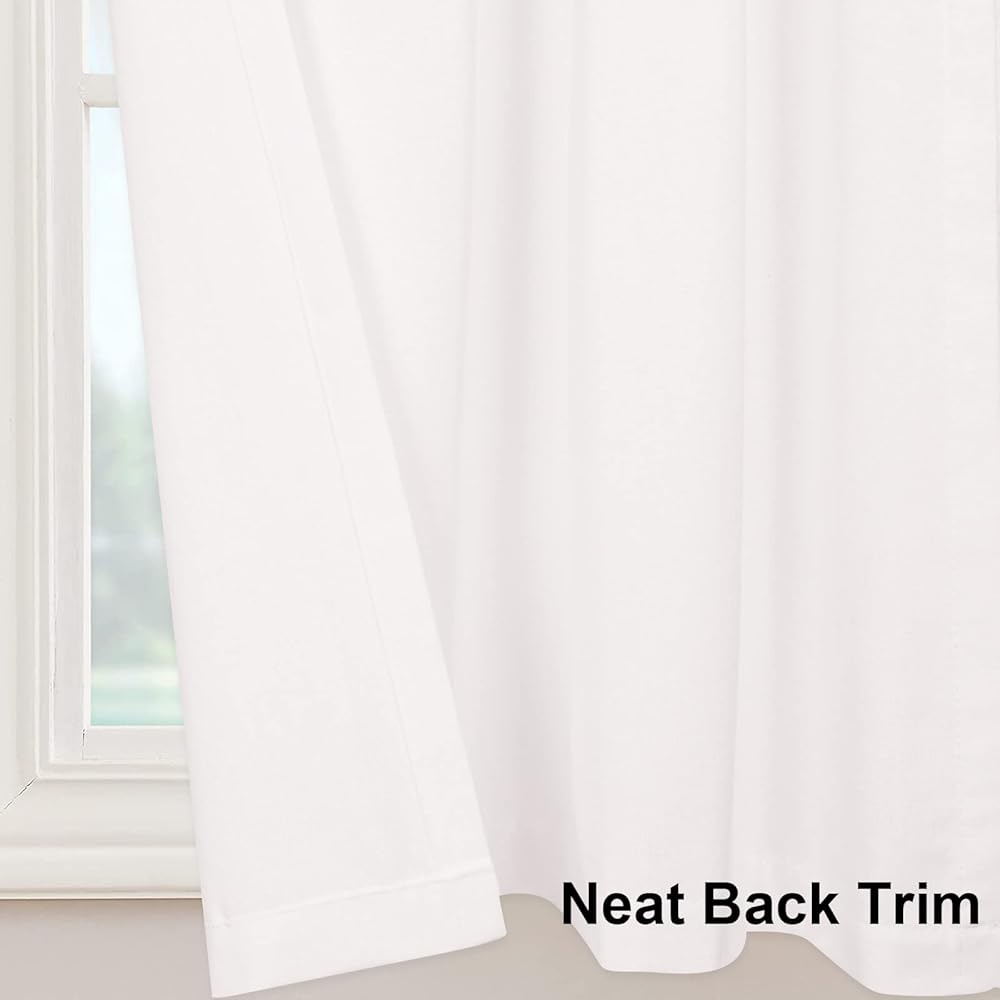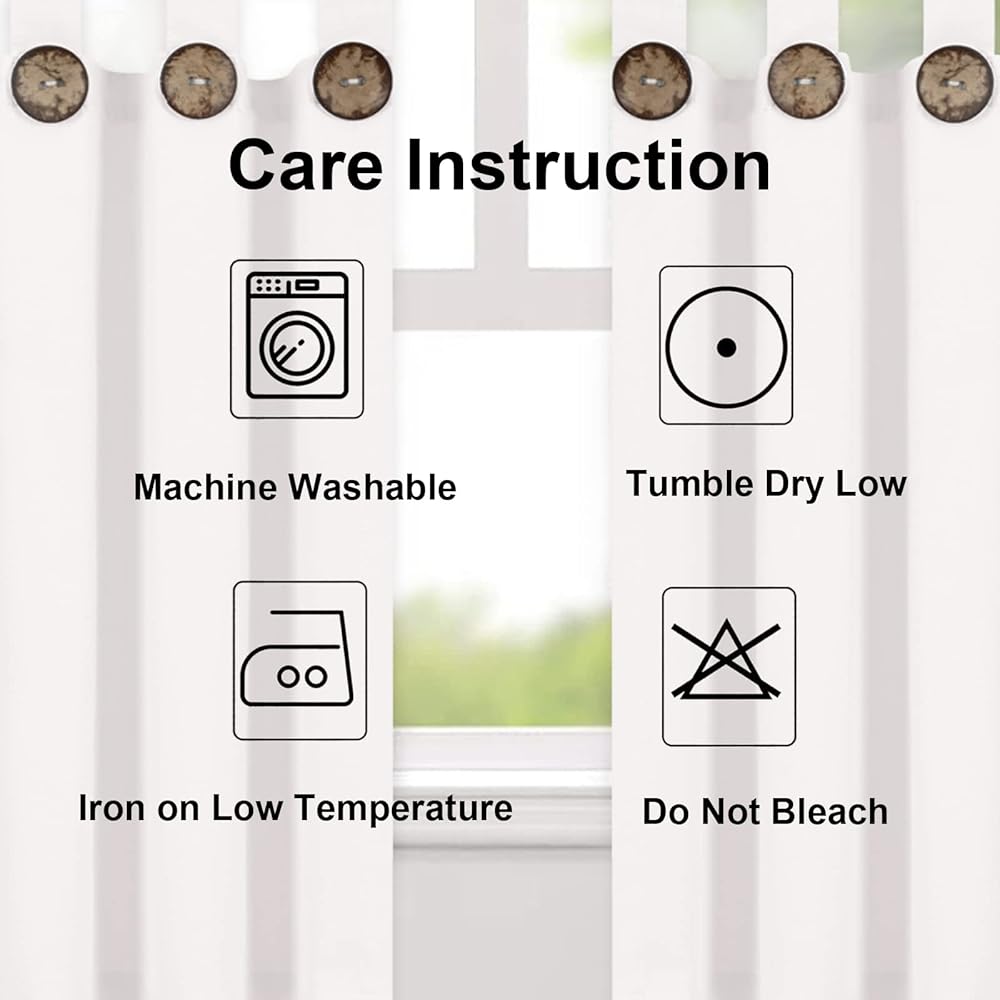 محتويات العبوة: تباع بزوج، ستائر بيضاء واحدة لكل مجموعة. مقاس كل لوحة: 52 بوصة عرض × 18 بوصة طول. يمكن تركيب التصميم العلوي بسهولة على قضبان الستارة القياسية أو المزخرفة التي يصل قطرها إلى 3 بوصات. تحتوي كل لوحة على ثمانية (8) حلقات علوية وأزرار ريفية.