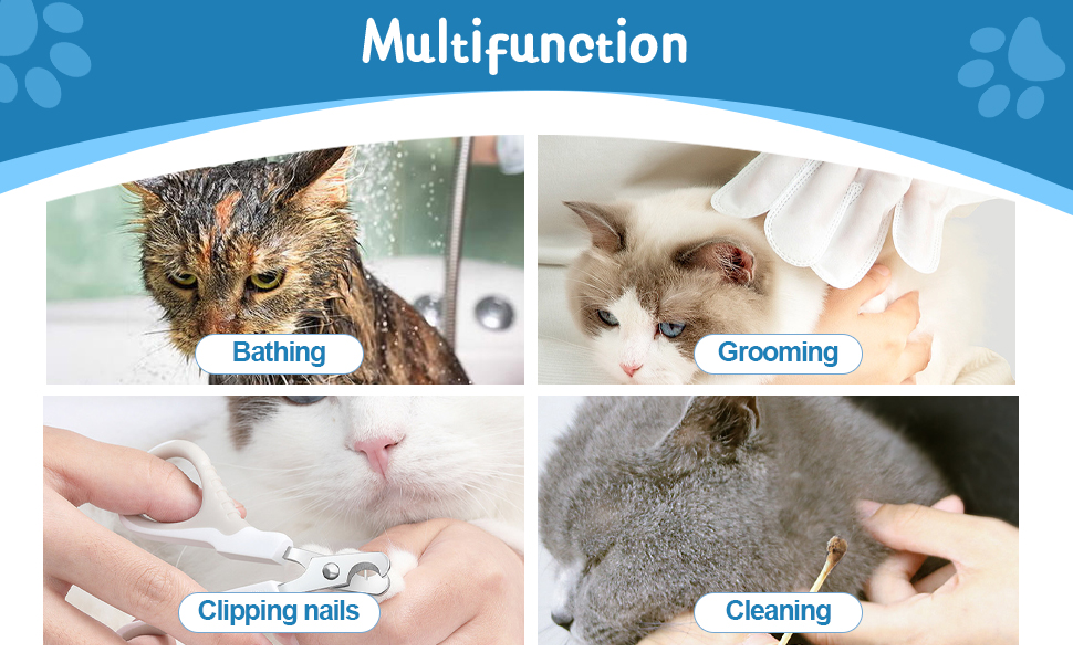 - متعددة الوظائف: كمامة القطط هذه رائعة لتقليم الأظافر. تساعدك على تهدئة قطتك ثم يمكنك قص الأظافر/الاستحمام/العناية بها، ومكافحة العض واللعق.