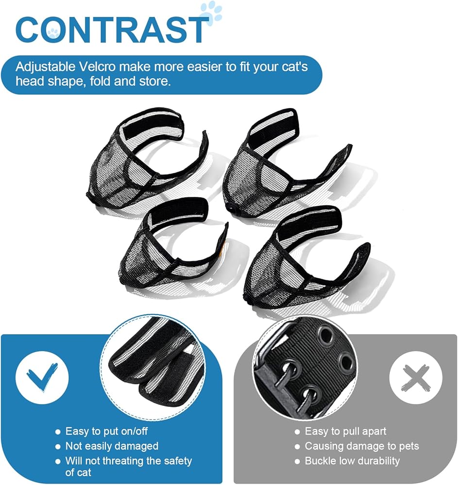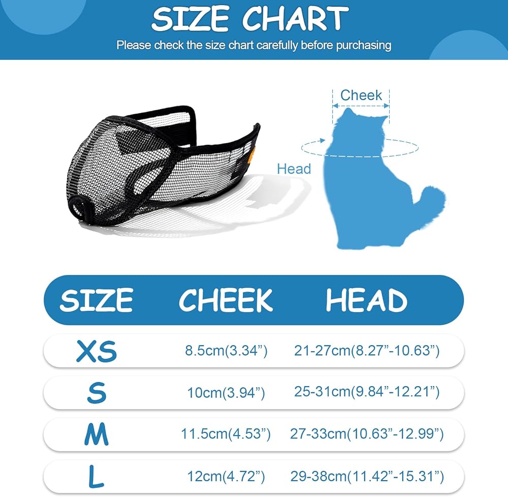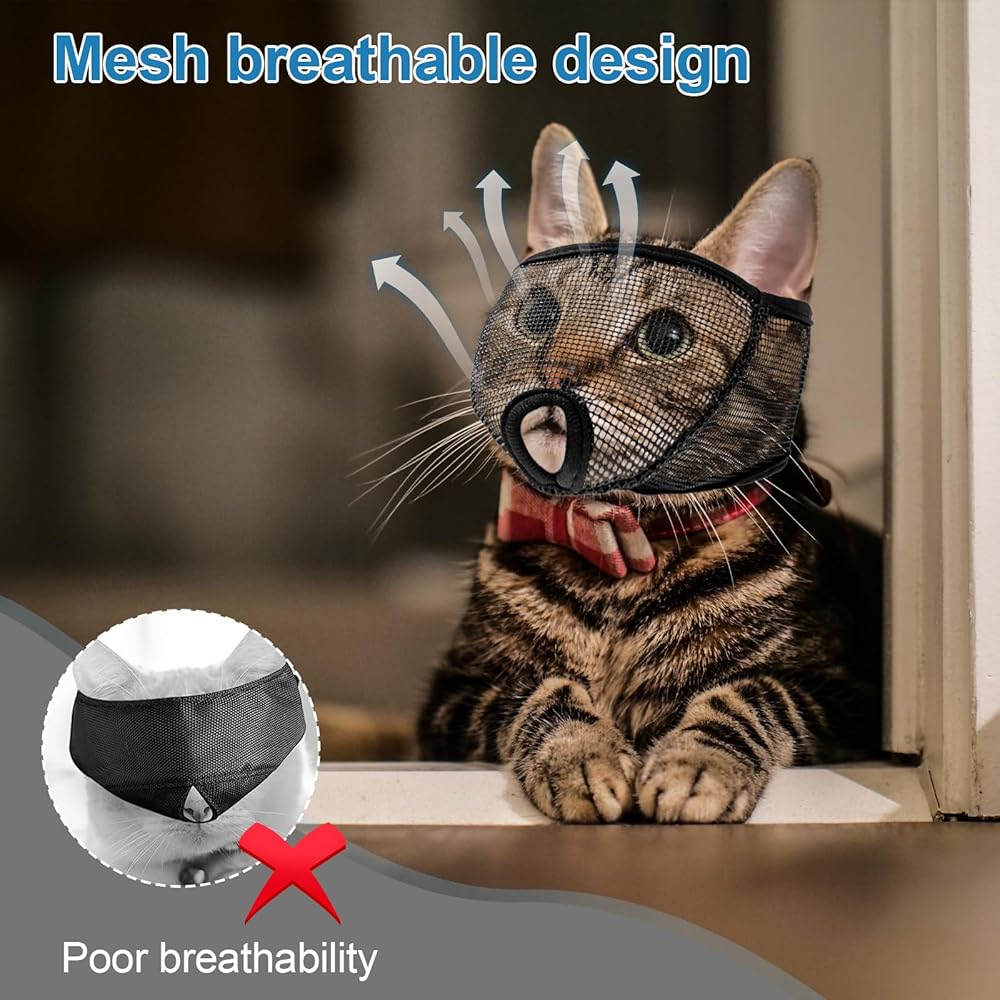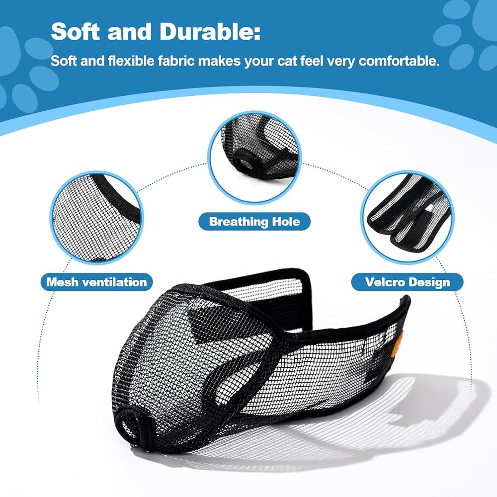 - ناعمة ومتينة: كمامة القطط هذه مصنوعة من شبكة ناعمة لتشعر قطتك براحة شديدة. تصميم بفتحة تنفس يبدد مخاوفك.