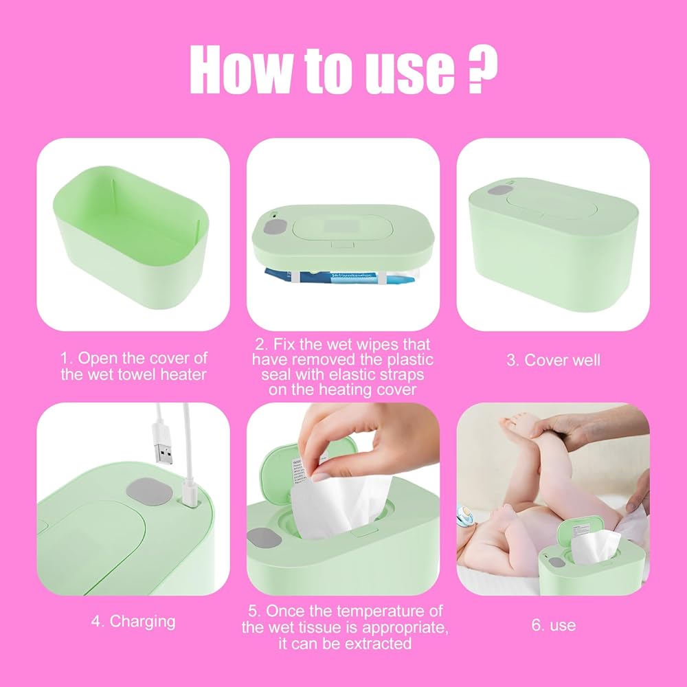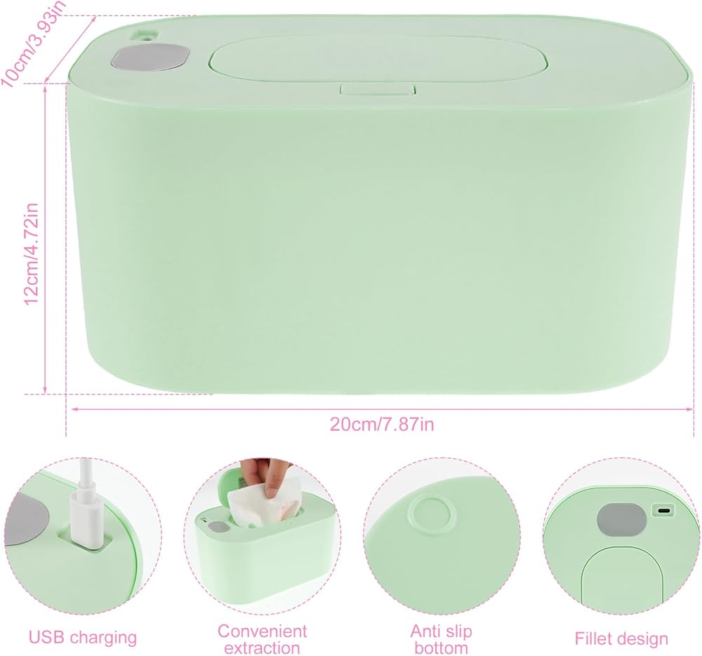 USB Powered: This baby wipe warmer is USB powered and comes with a USB cable that is convenient to charge. The wet wipe warmer can be charged by power bank, computer, laptop, car, etc.