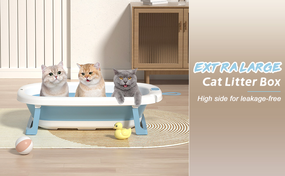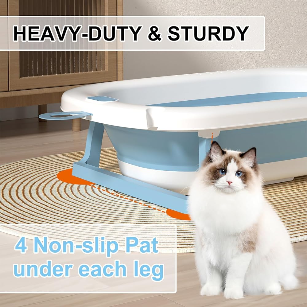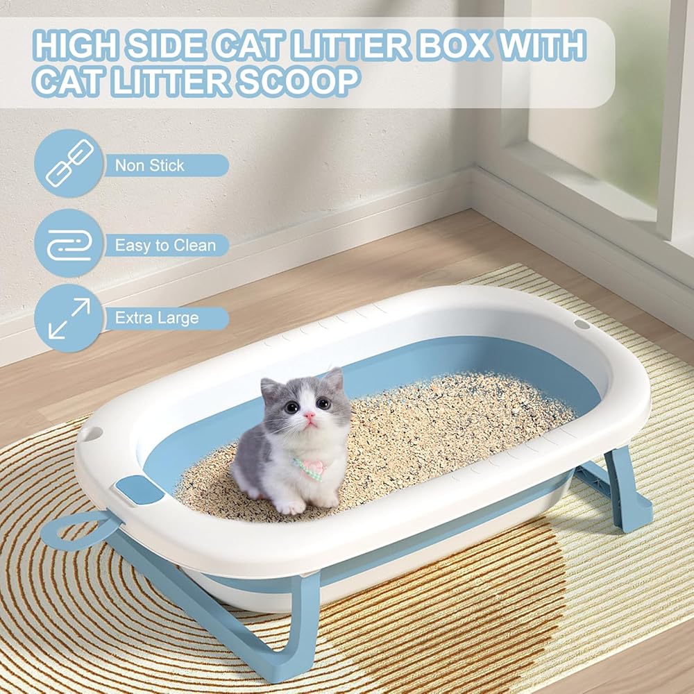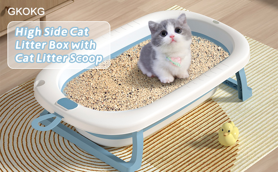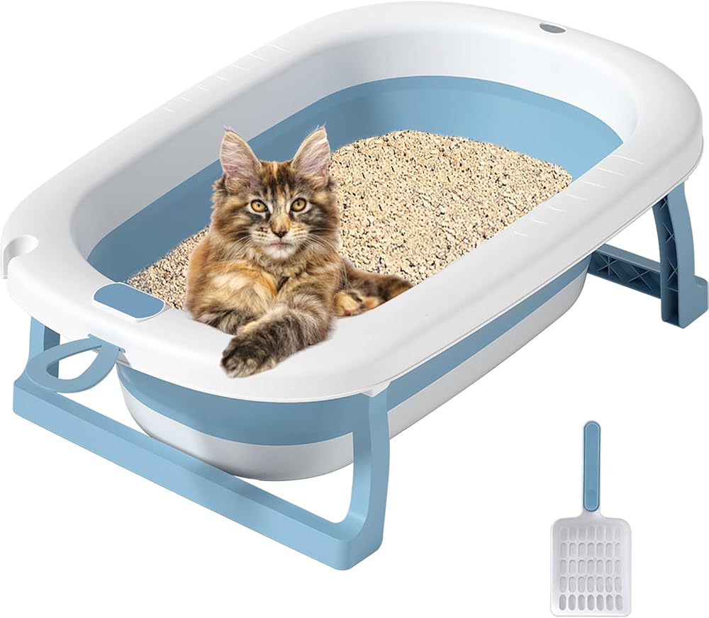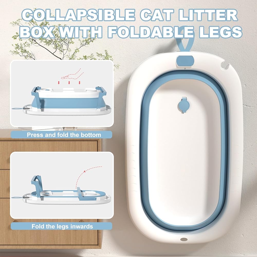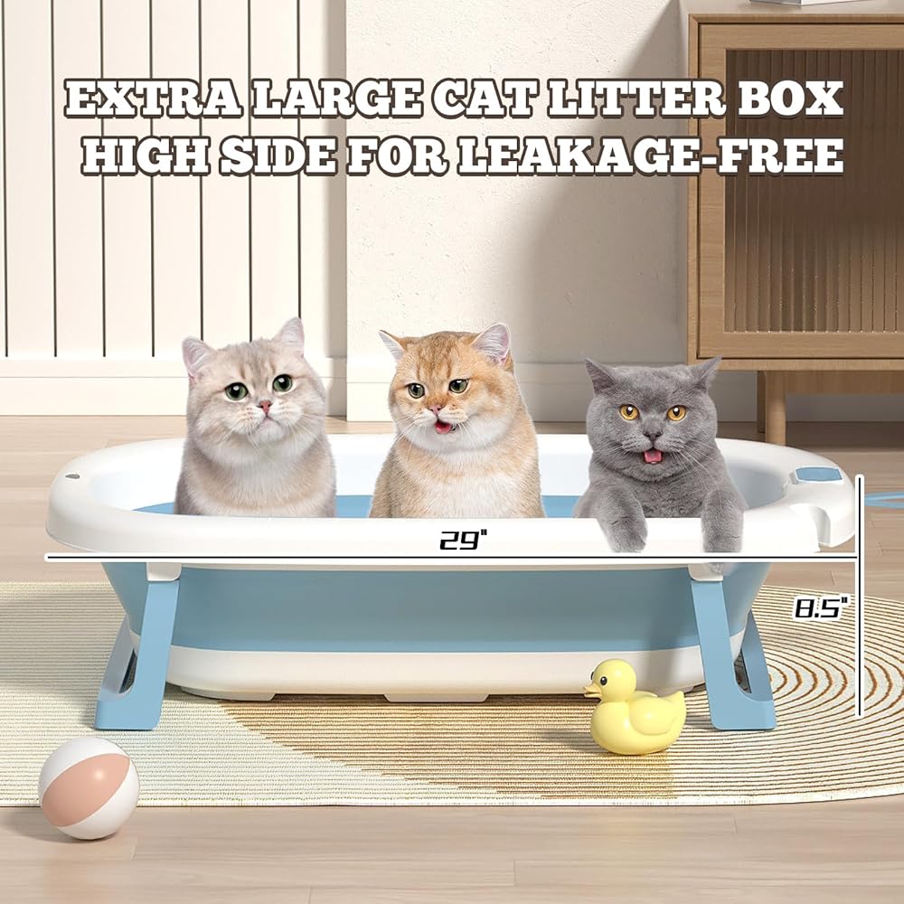 صندوق فضلات القطط الكبير جدًا من GKOKG للقطط الكبيرة، صندوق فضلات قابل للطي مع مغرفة فضلات غير لاصقة، صندوق فضلات القطط سعة 18 جالون لعائلة القطط الكبيرة، صندوق فضلات الساق قابل للطي وسهل التنظيف