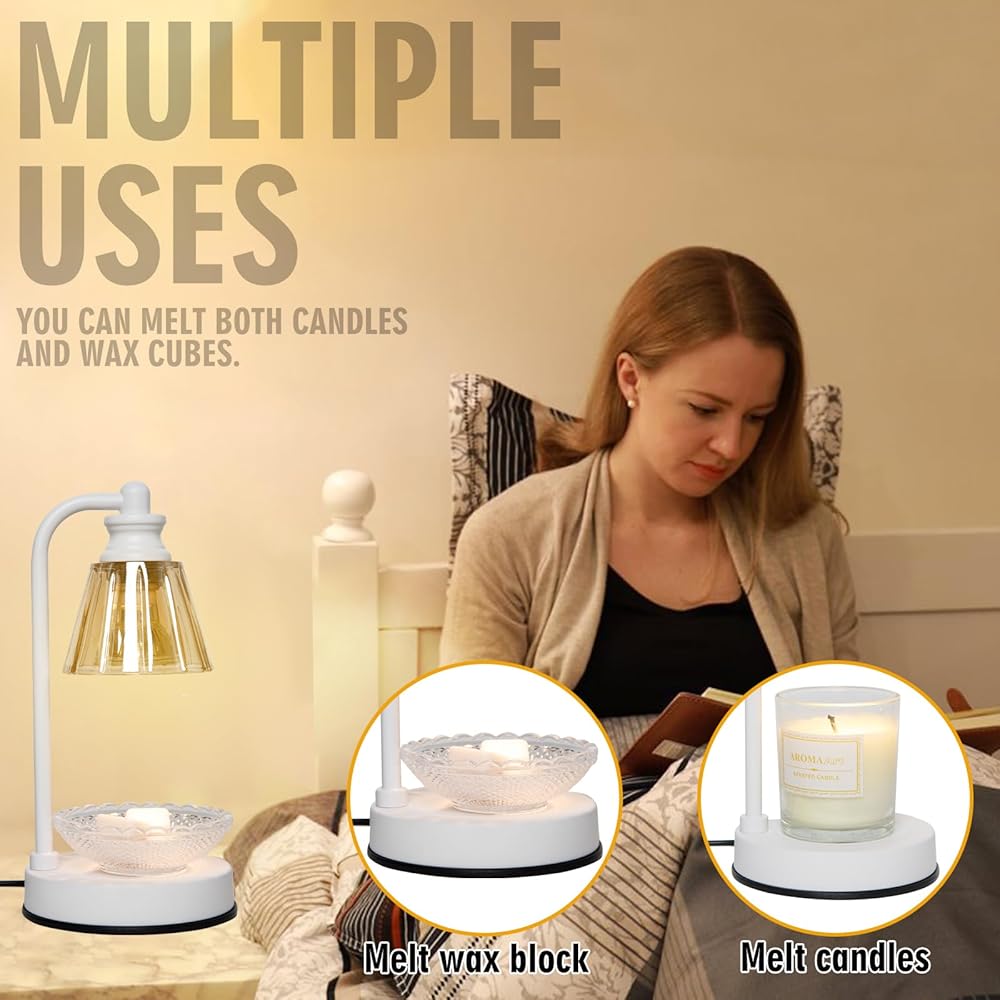 【وظائف التعتيم】مع سخان الشموع هذا، قل وداعًا للهب والدخان في الأماكن المغلقة بينما تستمتع بالعطر من الشمعة/الشمع. ما عليك سوى وضع وعاء الشمعة على القاعدة، وسوف تذوب الشمعة من الأعلى إلى الأسفل. تحكم في سرعة ذوبان الشمع/الشمع الخاص بك عن طريق ضبط مستويات الحرارة على مفتاح التعتيم، ويمكنك ضبط التحكم، واستخدامه بأمان أثناء النوم.