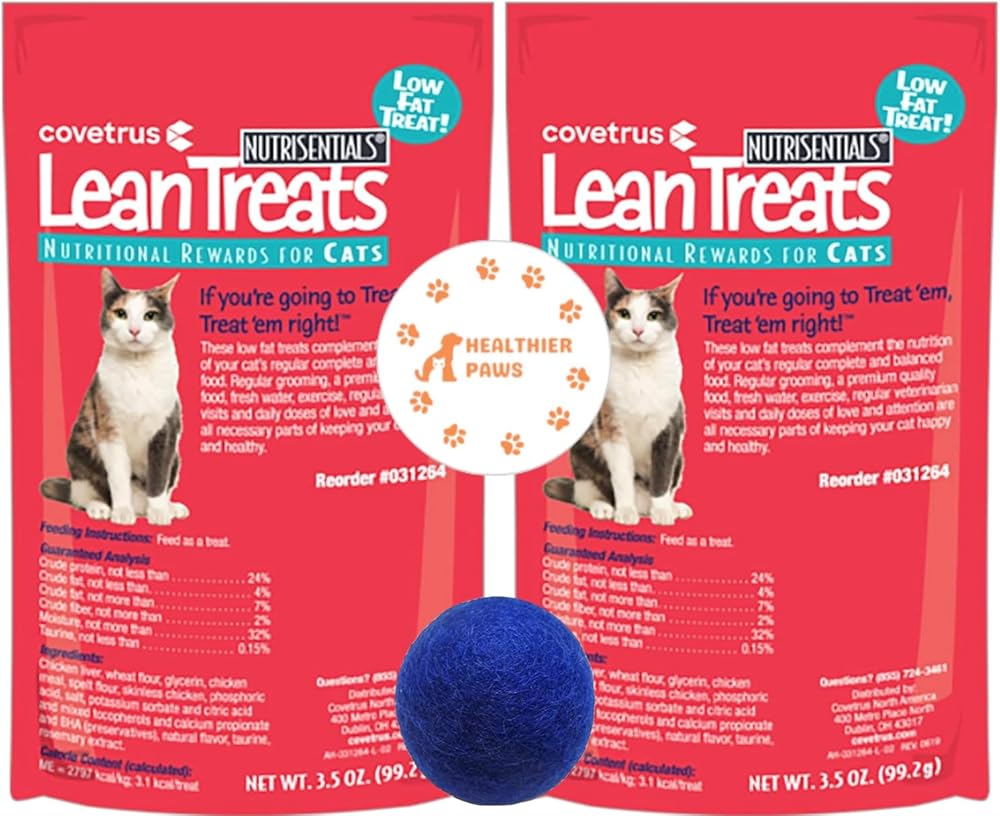 مكافآت غذائية للقطط من هيلث باوز لين تريتس، عبوة مكونة من قطعتين، ملصق بوزن 3.5 أونصة ولعبة قطيفة على شكل كرة قطيفة ملونة