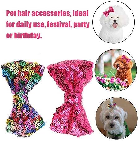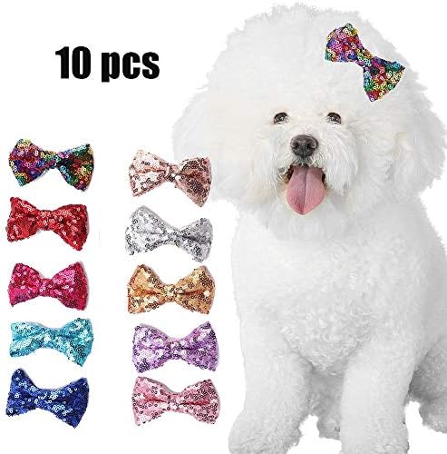 بايوفويا مجموعة مشابك شعر للكلاب والقطط والحيوانات الاليفة مكونة من 10 قطع مزينة بفيونكة لطيفة مزينة بالترتر اللامع واكسسوارات شعر الحيوانات الاليفة مع مشابك