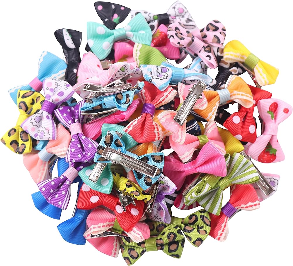 ربطات شعر مصنوعة يدويًا مع مشبك تمساح، 30 زوجًا (60 قطعة) من ربطات الشعر، أنواع مختلفة من الأنماط التي يمكن أن تمنحك العديد من الخيارات لتزيين كلبك.