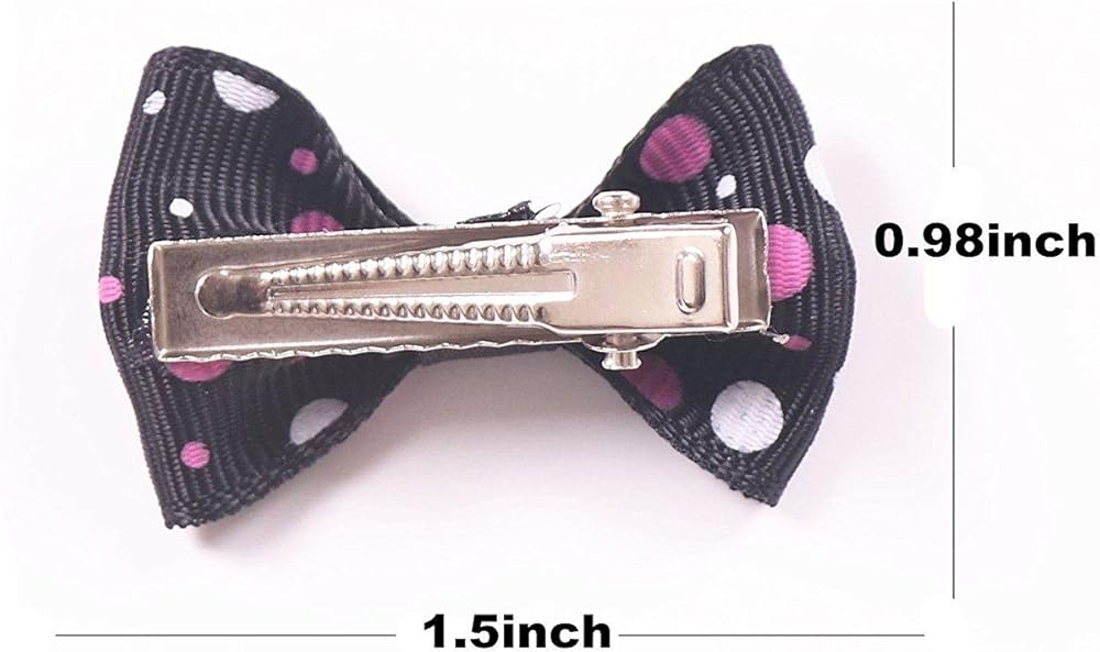 المادة: ربطات شعر بشريط يدوي الصنع، مشابك تمساح من الستانلس ستيل، تحافظ على تصفيفة الشعر وتمنعه من السقوط، ربطة شعر لطيفة، مناسبة للكلاب الكبيرة والصغيرة والمتوسطة.