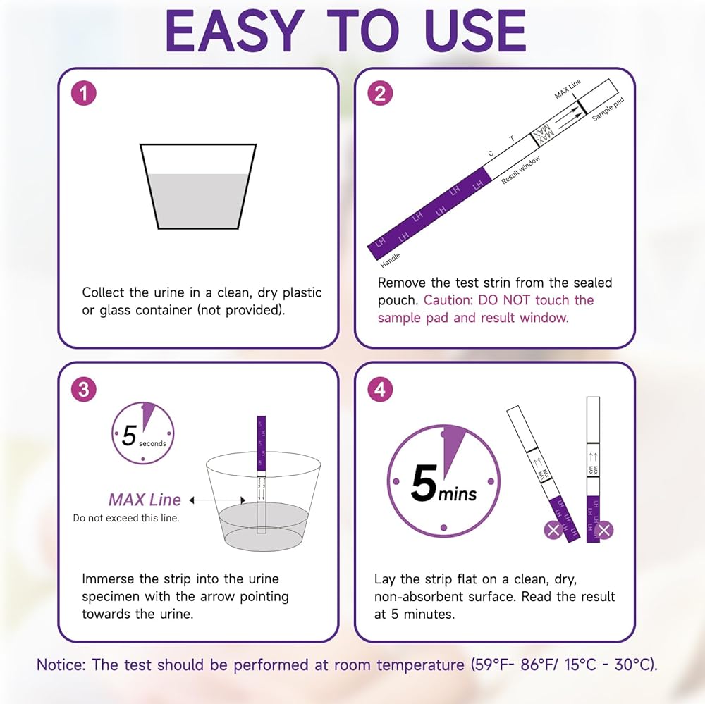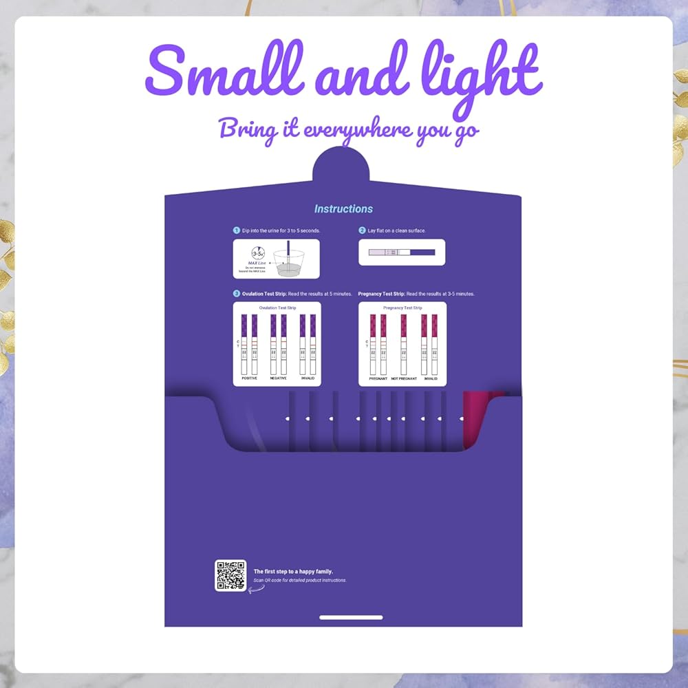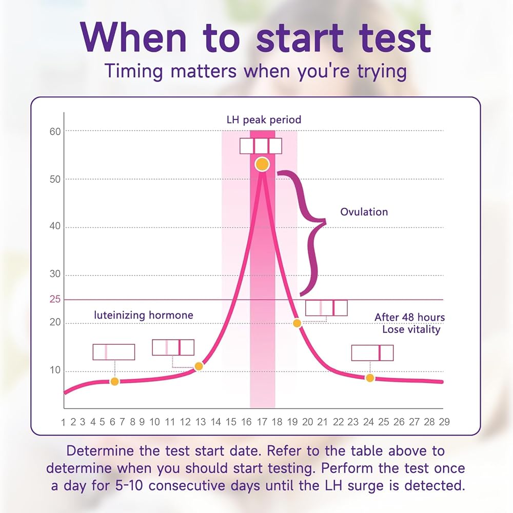 حزمة القيمة: تتضمن هذه الحزمة جميع الأساسيات اللازمة لعملية الإخصاب. تحتوي هذه الحزمة على كمية تكفي لمدة شهر واحد من اختبار LH القياسي 25mIU (50 شريط اختبار الإباضة القياسي)