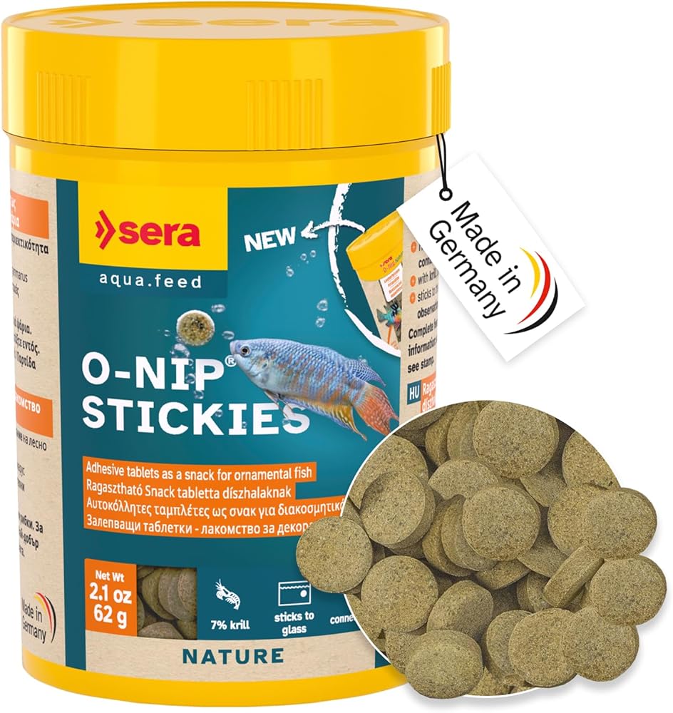 سيرا او-نيب هي الرقة التي تتكون من أقراص مصنعة بعناية يمكن ربطها بزجاج حوض السمك عن طريق الضغط البسيط على الإصبع. وهذا يسمح بمشاهدة الأسماك الخجولة بشكل ممتاز أثناء تناول الطعام. إن الكمية الكبيرة من الحيوانات الغذائية مثل ديدان الدم والكريل وتوبيفيكس تجعل الأقراص لذيذة وصحية وقيمة بشكل خاص للتغذية المناسبة. مكونات قيمة بالإضافة إلى كمية بروتين عالية وسهلة الهضم تدعم النمو الصحي والمظهر الرائع والسلوك الطبيعي.