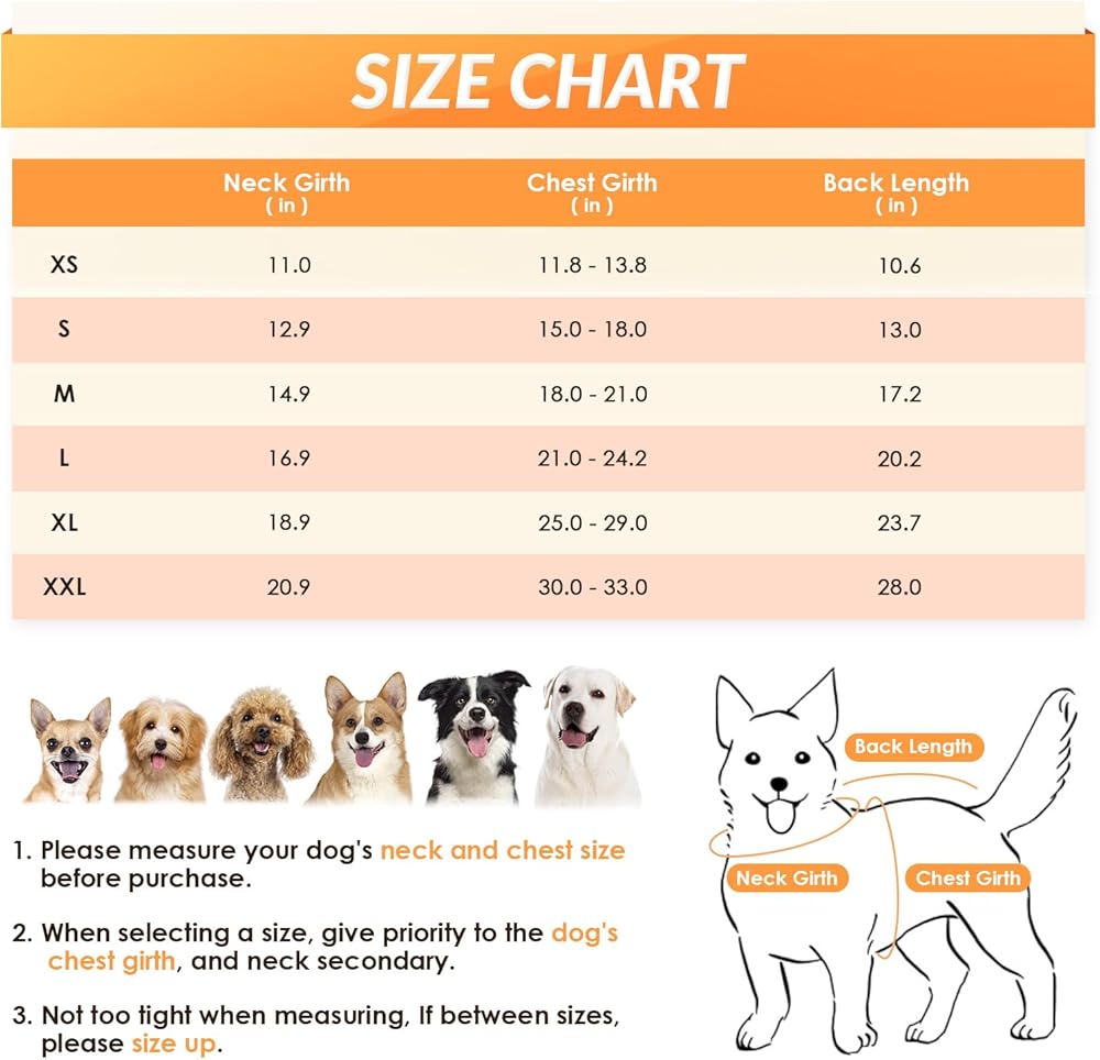 • 【5 مقاسات متاحة للملاءمة المثالية】--- معاطف الكلاب لدينا متوفرة بخمسة مقاسات، مناسبة لمجموعة واسعة من سلالات الكلاب. مثل Westie، Toy Poodle، Chihuahua، Maltese، Pomeranian، Bichon، Shih Tzu، Jack Russell، Scottie، Schnauzer، Pug، Boston Terrier، Beagle، Corgi، Dachshund، Bulldog، Golden Retriever، Great Dane، Samoyed وغيرها. نوصي بقياس حيوانك الأليف بدقة للتأكد من أن المعطف يناسب حيواناتك الأليفة جيدًا، وإذا كان بين المقاسين، فيرجى اختيار مقاس أكبر.