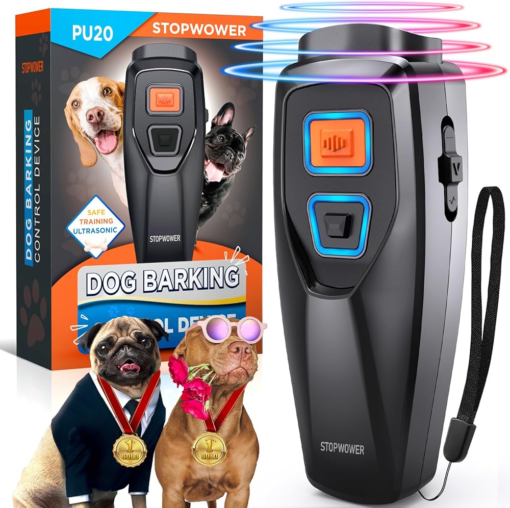 جهاز مضاد للنباح، أجهزة التحكم في نباح الكلاب بالموجات فوق الصوتية بنطاق 16.4 قدم مع مستشعر مزدوج آمن للإنسان والكلاب، 3 أوضاع لتدريب الكلاب، جهاز مضاد للنباح قابل لإعادة الشحن مع مساعدات للتدريب والسلوك