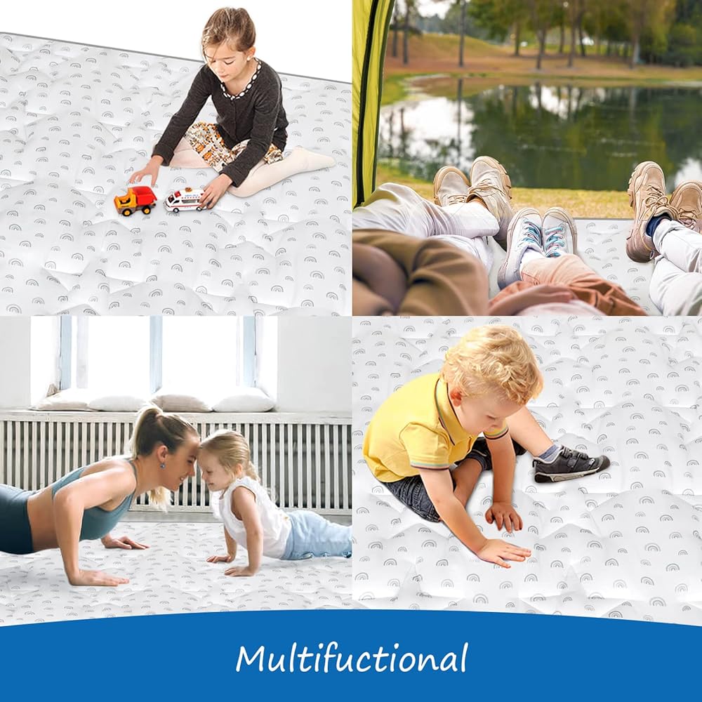 عالية الجودة وقابلة للطي: سجادة لعب الأطفال هذه مقاس 50*50 عبارة عن قطعة كاملة قابلة للطي حتى تتمكن من تعبئتها بسهولة ولن تضيع مساحة كبيرة. كما يمكنك طيها ووضعها في السيارة إلى الشاطئ أو الحديقة أو أي مكان تريده.