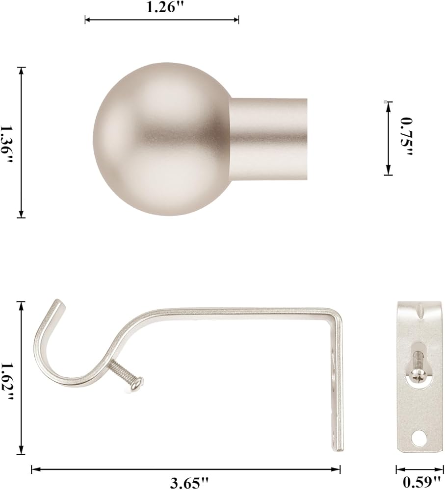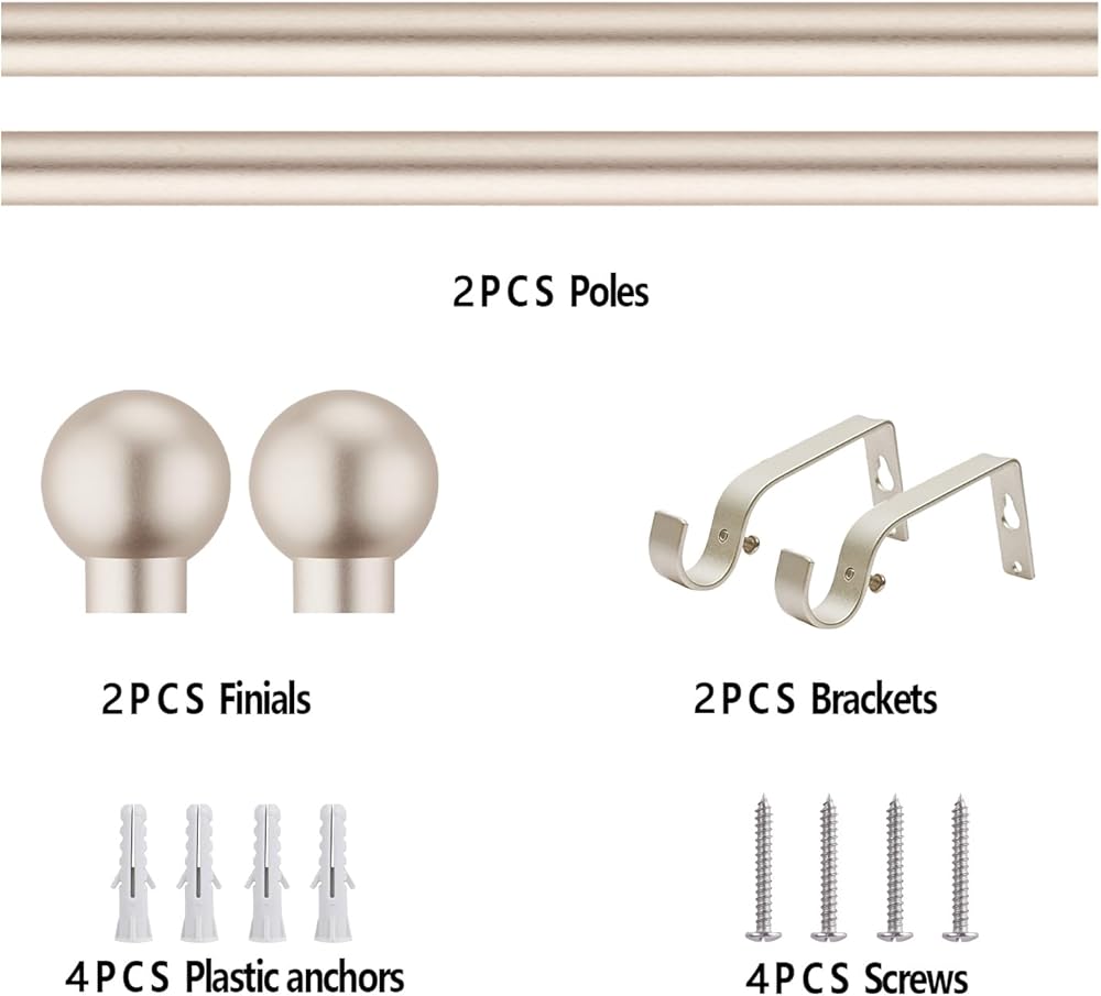 مجموعة قضبان ستائر فردية مقاس 3/4 بوصة مع نهايات دائرية، قابلة للتعديل من 28 إلى 48 بوصة، قضبان ستائر شديدة التحمل للنوافذ، أبيض