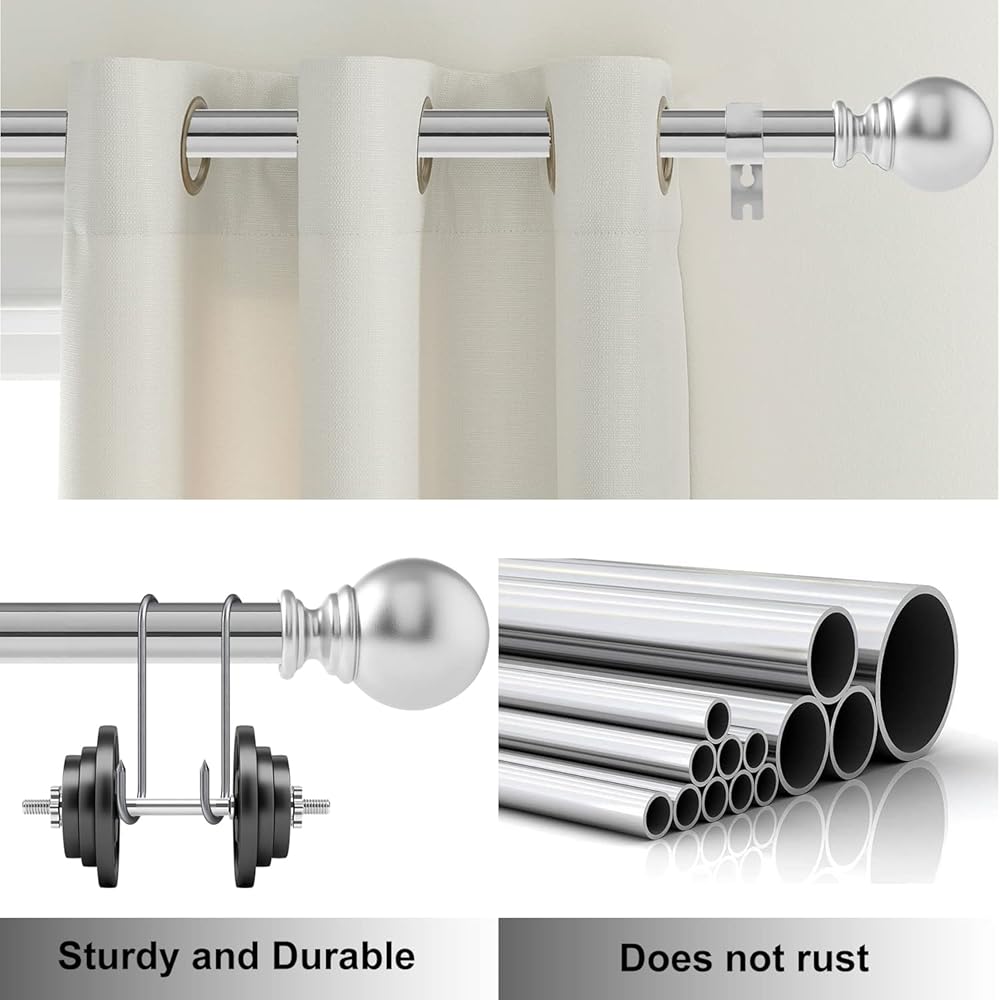 ➤ مصنوع من الفولاذ المقاوم للصدأ عالي الجودة مقاس 2.54 سم، يمكن لقضيب ستارة النافذة هذا أن يتطابق تمامًا مع ستائر جيب القضيب، والستائر ذات الحلقات المعدنية، والستائر العلوية، والستائر المطوية، إلخ. خيار مثالي لدعم الستائر الثقيلة. أقوى بكثير وأكثر متانة من القضبان الأخرى مقاس 5/8 بوصة.