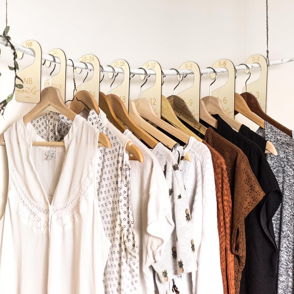 Quality Material: Made of wood material, smooth, durable and not easy to break, and they won't snag or damage baby's clothes, keeping clothes organized and serving you for a long time.