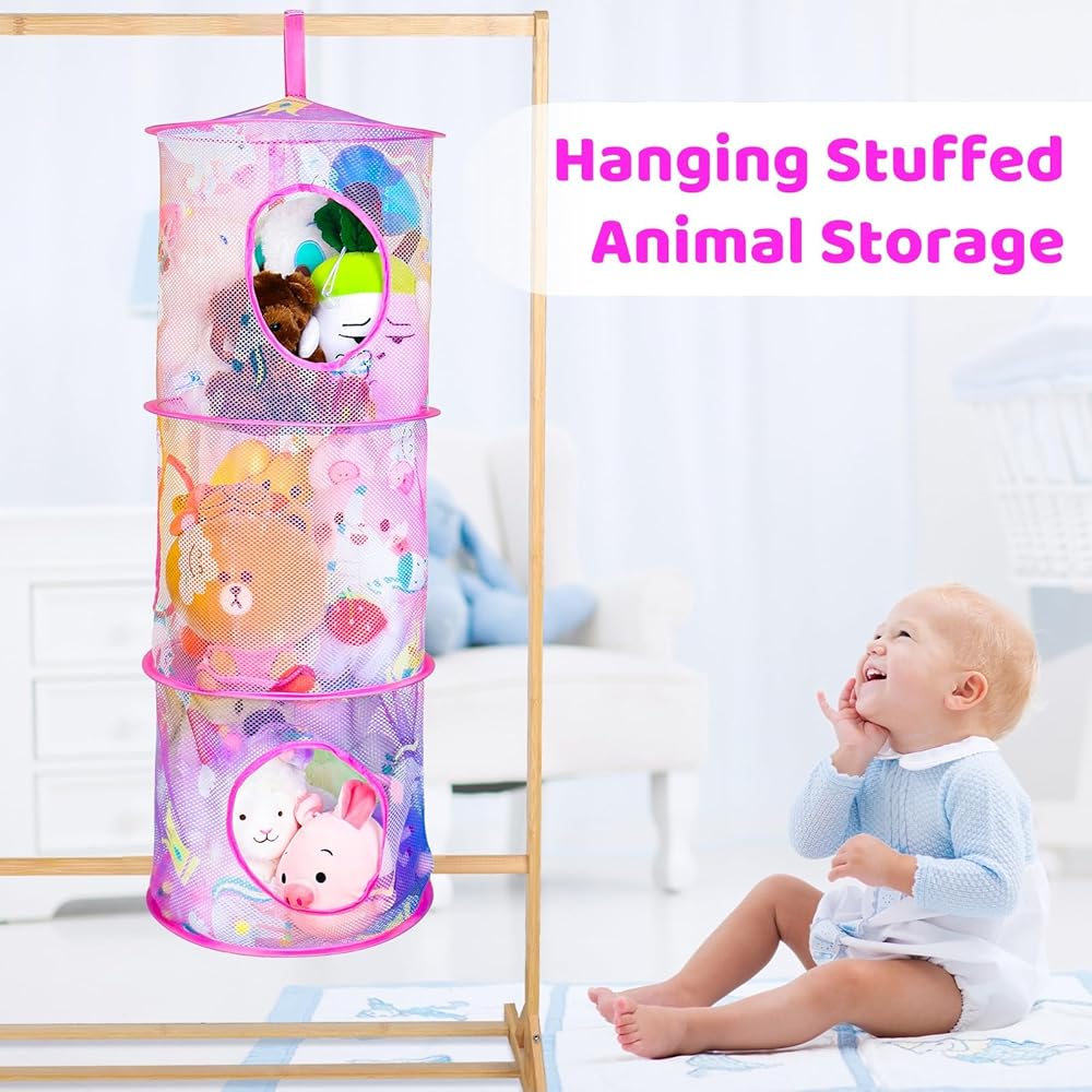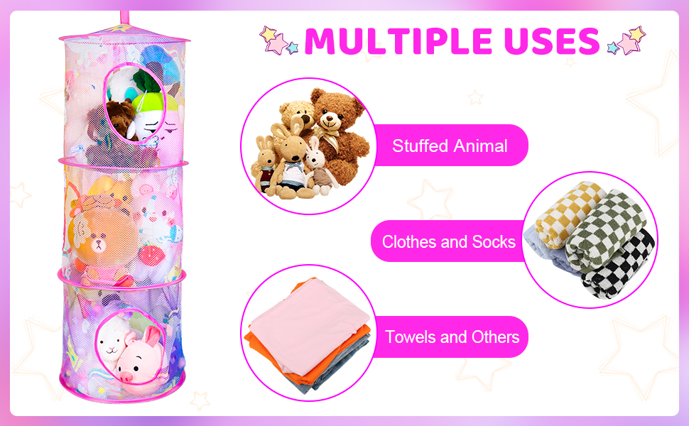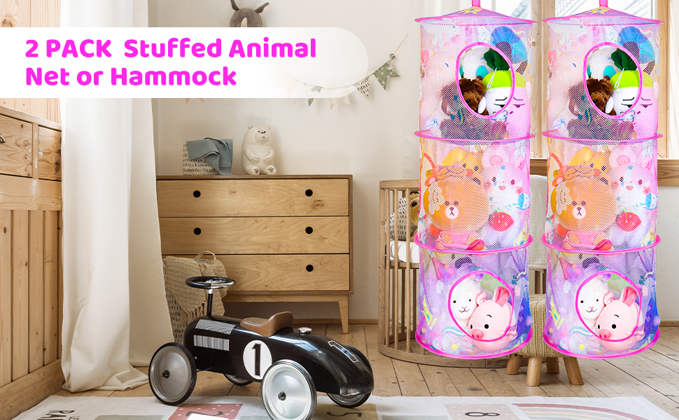 3. تخزين الحيوانات المحشوة --- شبكة تخزين الألعاب المكونة من 3 أقسام للحيوانات المحشوة مناسبة للأطفال لوضع ألعابهم القطيفة وجعل الغرفة مرتبة.