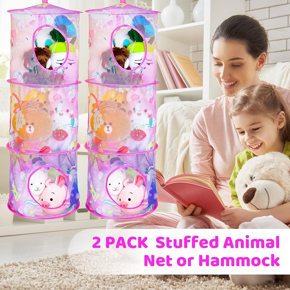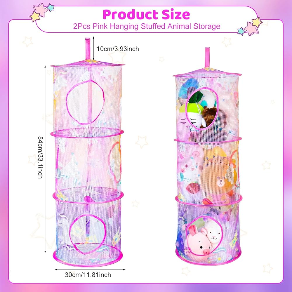 【مجموعة شبكة حيوانات محشوة على شكل يونيكورن】--- ستحصل على قطعتين من منظم الحيوانات باللون البينك بنمط يونيكورن، وهو موفر للمساحة محبوب من قبل العديد من العائلات، سيحبه أطفالك.