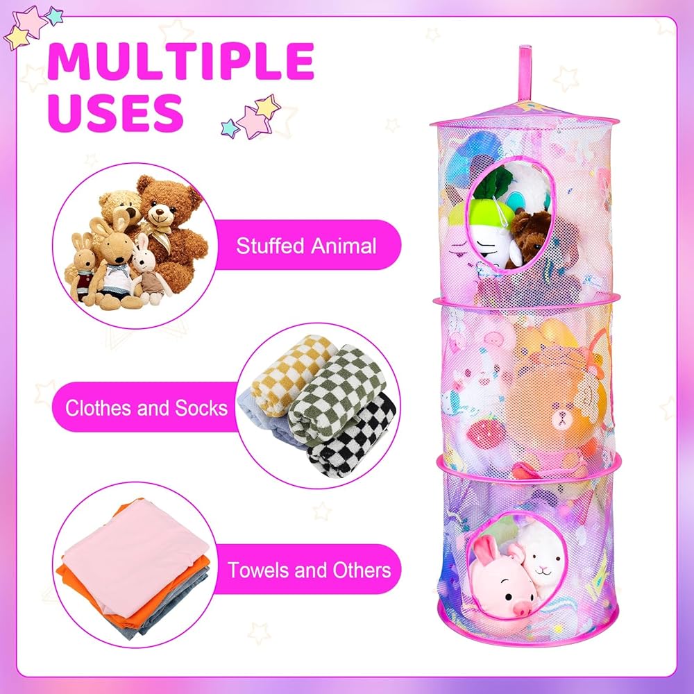 【سعة كبيرة】--- يبلغ مقاس كل منظم أغراض الحيوانات 11.8 × 33.5 انش/ 30 × 85 سم (القطر × الارتفاع) وكل أرجوحة تحتوي على 3 مساحات تخزين توفر لك مساحة تخزين كبيرة لحمل عدد كبير من الحيوانات المحشوة والدمى والألعاب الناعمة الأخرى.