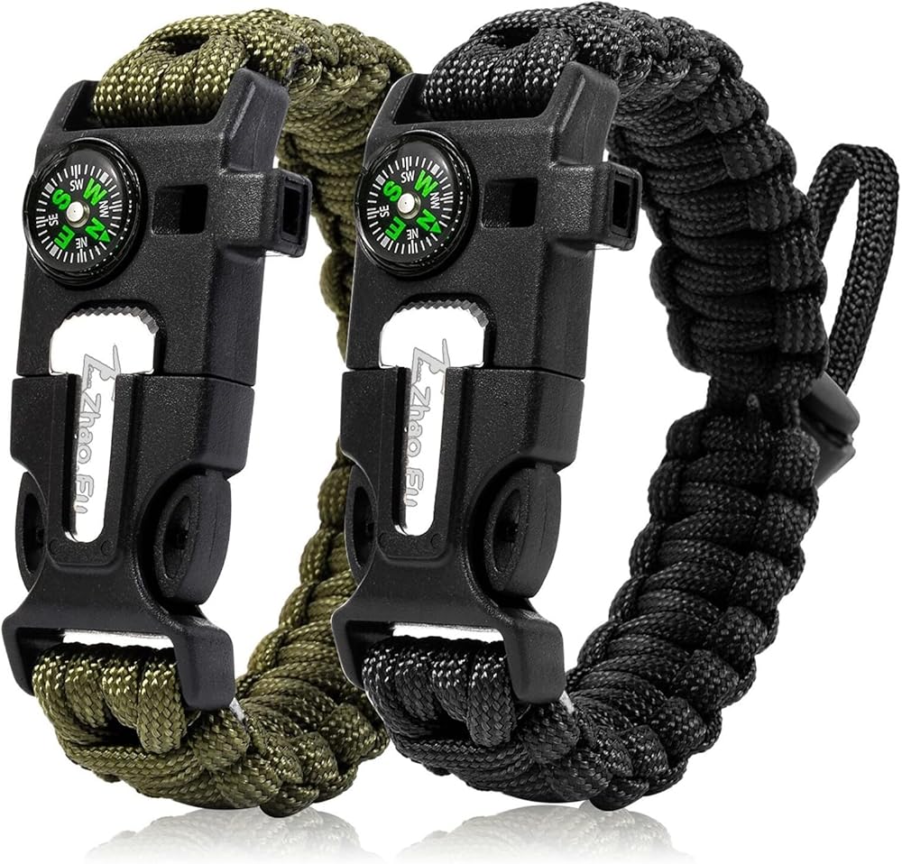 أساور باراكورد قابلة للتعديل في حالات الطوارئ (عبوة من قطعتين) - بوصلة وصفارة وبطاقة أدوات | مجموعة تكتيكية متعددة الوظائف في الهواء الطلق للمشي والتخييم وصيد الأسماك