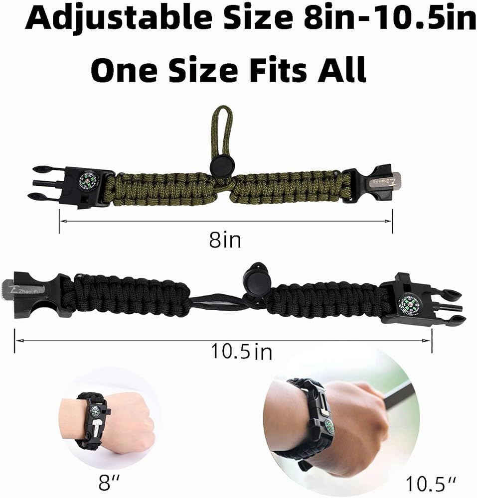 أداة النجاة الرائعة: سوار النجاة في حالات الطوارئ، مضفر بحبل المظلة العسكري ذو 7 النواة، يمكن أن يتحمل حمولة حوالي 450 رطل، صلب جدًا. يحتوي سوار النجاة على جميع الميزات الأساسية التي تحتاجها للبقاء على قيد الحياة في البرية، ولا يحتوي على مجموعة كاملة من الأشياء الإضافية التي لن تستخدمها أبدًا