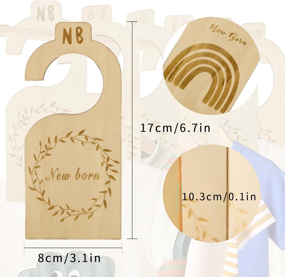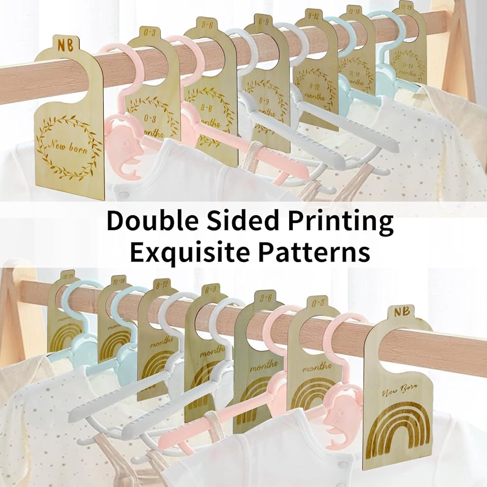 • Exquisite double-sided design:The double-sided pattern makes it easy to find the size you want from either side.The exquisite pattern design adds a touch of beauty to the baby closet and can also be hung as a decoration in children's rooms.