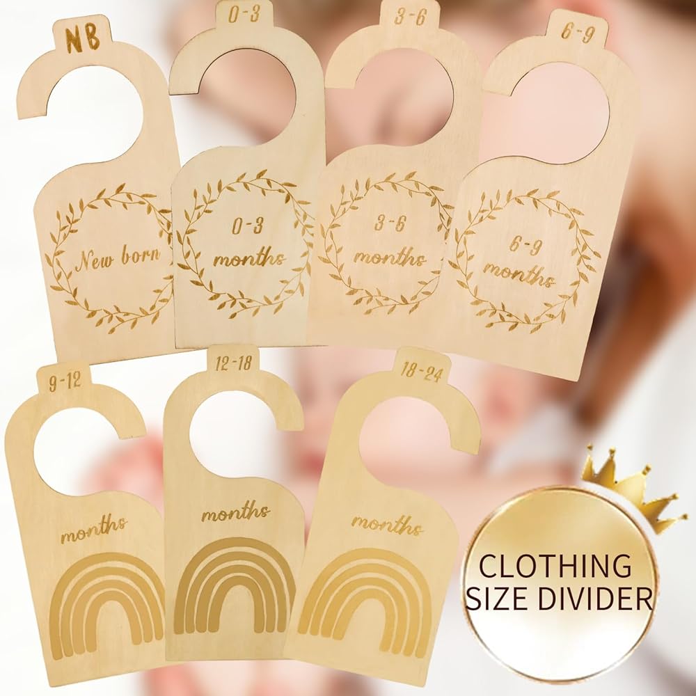 • Keep baby closet neat and organized:Organize baby's closet with ease using these baby closet dividers for clothes.set of 7 cute,gender-neutral dividers to sort baby's clothes by size.Great baby shower gift for new moms or dads to help keep baby closet organized