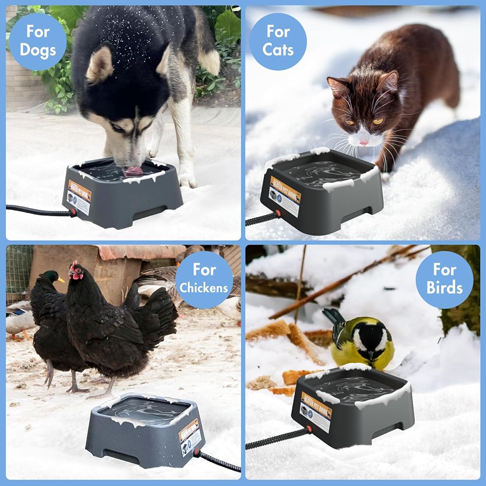 وعاء الماء الساخن للحيوانات الأليفة مناسب للاستخدام الخارجي خلال فصل الشتاء ويمكن استخدامه من قبل الكلاب والقطط والأرانب والدجاج والبط والسناجب. نوصي بوضعه في منطقة محمية لتجنب أضرار الرياح.