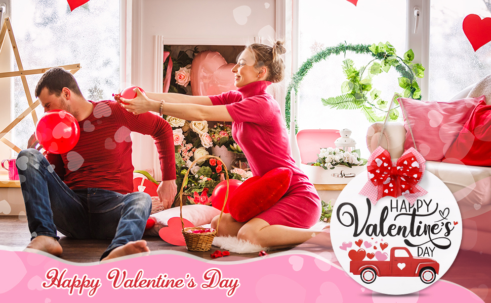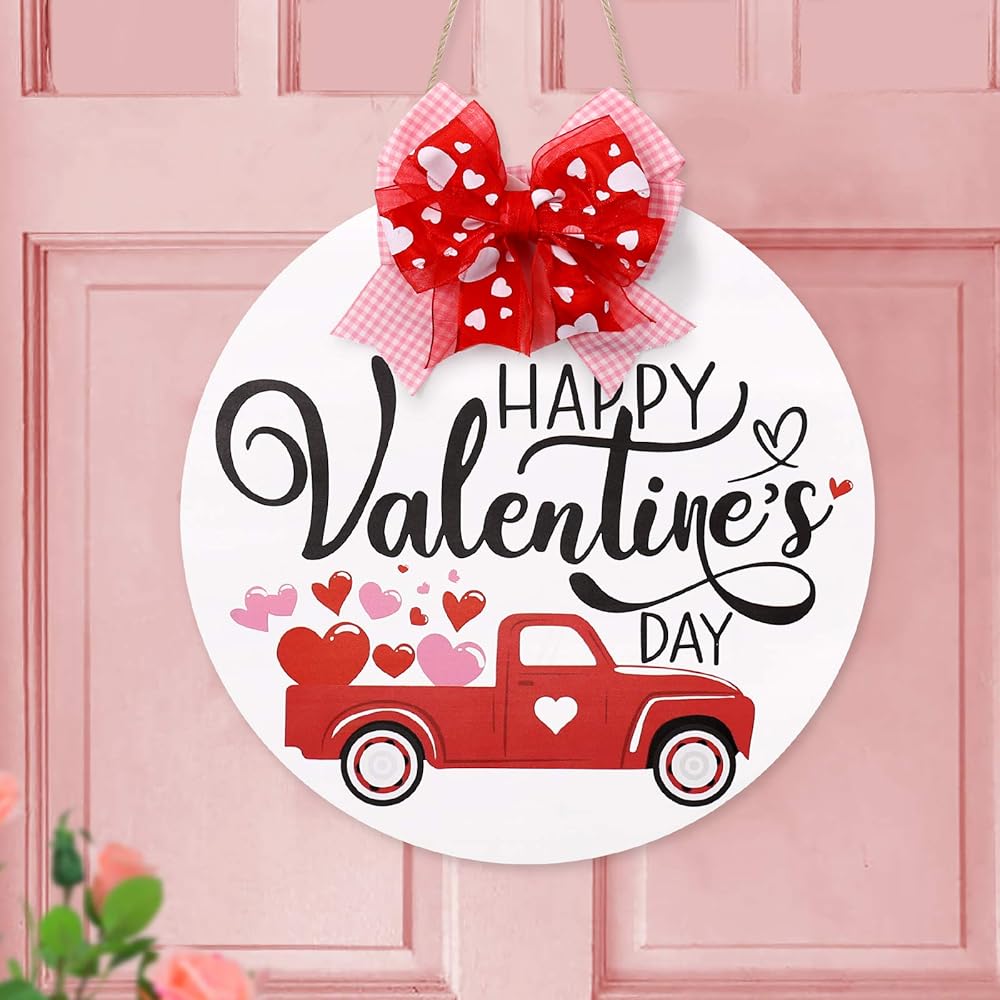 Red Truck Valentine's Day Door Decor-This set consists of one door sign. Versatile with traditional red heart and holiday truck accents.With 2021 Valentine's Day coming up, it would be a great choice to bring it home to decorate your door.