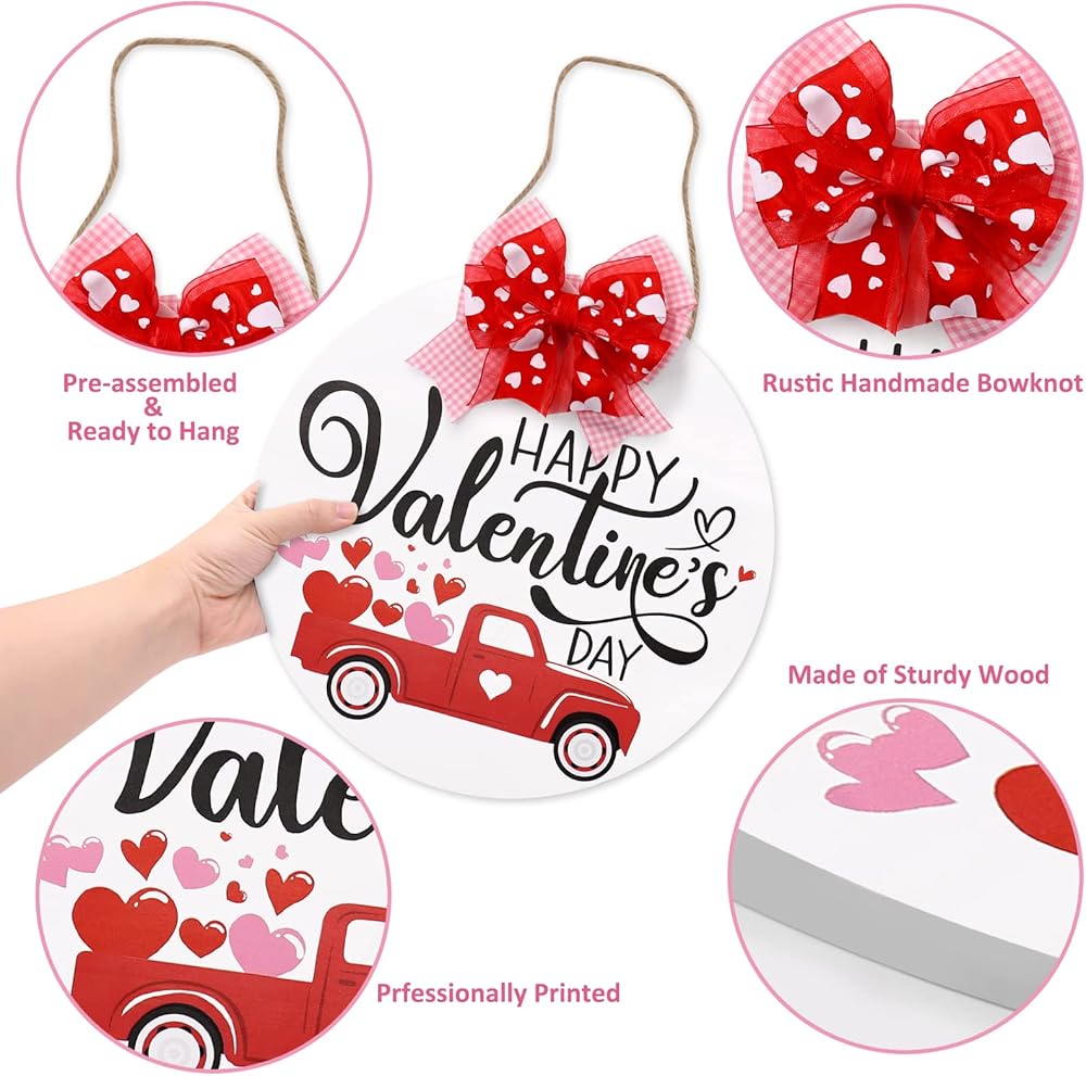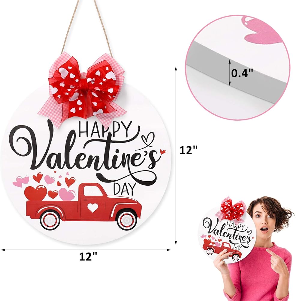 Perfect Size & Ready To Hang-The door sign is approximately 12 inches in diameter and comes with a traditional Valentine's Day colored bow, no diy required. Which can be perfectly hung on front door, wall, window, fireplace, stair, porch, or placed as an accessory in the house or office.