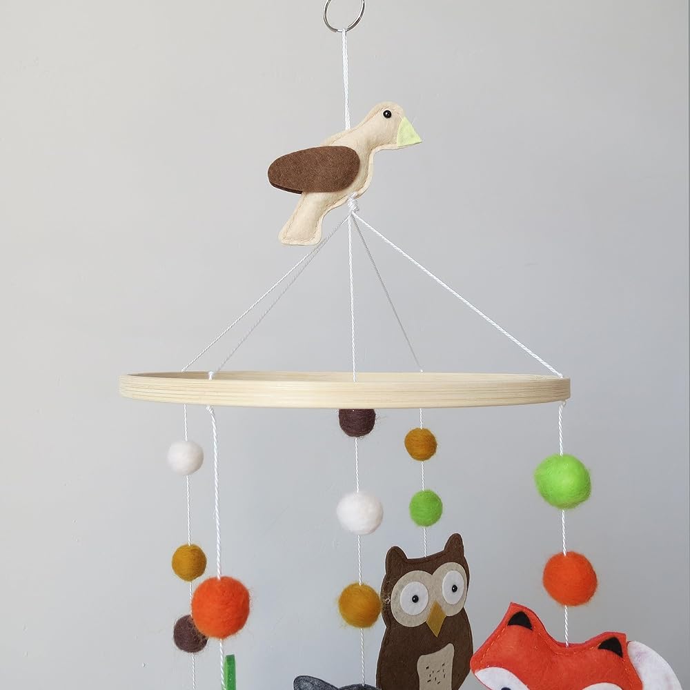 Neutral Woodland Crib Mobile Made From High-Quality Felt and Stuffed with a Soft Hypoallergenic Filler, This Mobile is Safe and Soothing for Your Little One. It's a Perfect Baby Shower Gift for Both Boys and Girls.