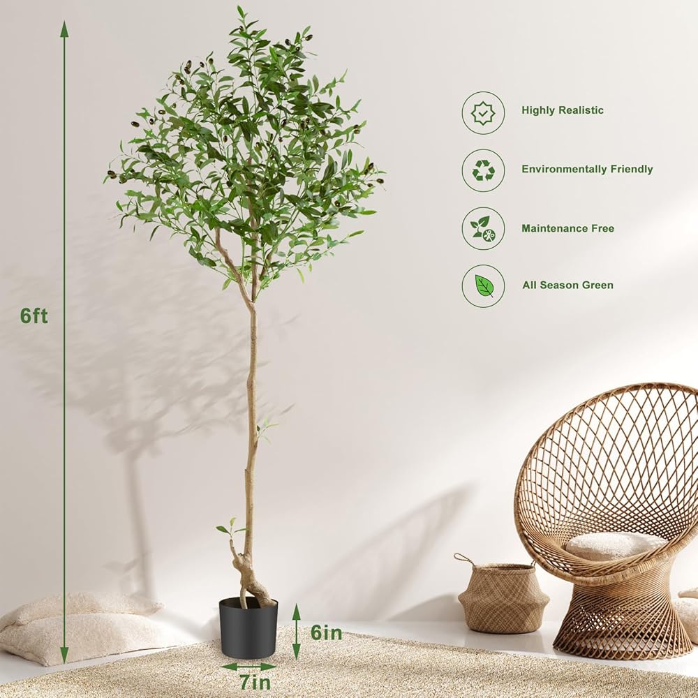 【عناية سهلة】: تتميز أشجار الزيتون الاصطناعية بخصائص لا تمتلكها الأشجار الحقيقية، ولن تجف أبدًا أو تموت أو تجذب الحشرات المزعجة. النباتات الاصطناعية لديكور المنزل الداخلي لا تحتاج إلى الري أو التقليم أو ضوء الشمس، ويمكن أن تبقى خضراء لفترة طويلة، مما يجعل غرفتك خضراء دائمًا وتضفي جوًا رومانسيًا على الغرفة.