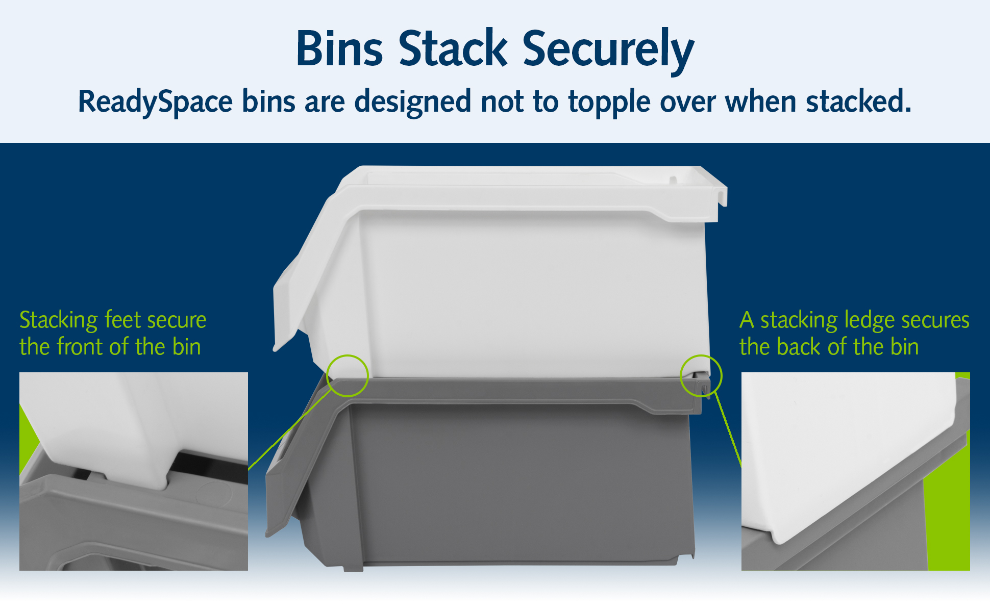 Get all your spaces ready with READYSPACE stackable plastic organizer bins. Conveniently sized storage baskets and organization bins with open front design for easy access to stored items. Stackable storage bins keep all your essentials neatly organized and within reach which also nest when empty to save space. The durable and smooth design of these storage containers is perfect for a variety of uses like camping gear, pet supplies, garage workshops, snacks, and toys. Stackable storage bins are the perfect size for pantry shelves, under the sink storage, toy storage, office, bathroom drawers, makeup, and craft organization and they make great garage storage bins; the possibilities are endless.