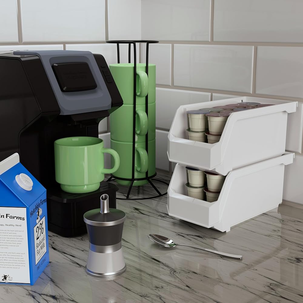 PERFECT SIZE - Stackable storage bins are the perfect size for pantry shelves, under the sink storage, toy storage, office, bathroom drawers, makeup, and craft organization and they make great garage storage bins; the possibilities are endless