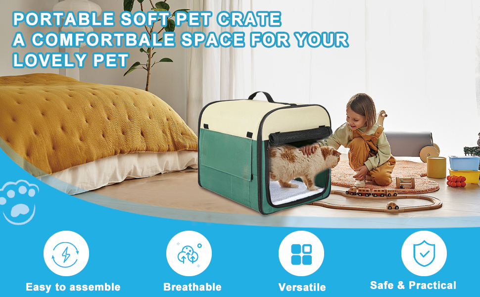 【Multipurpose】:The soft dog crate provides a cozy and secure environment for your pet during camping, car travels, hotel stays, or even at home