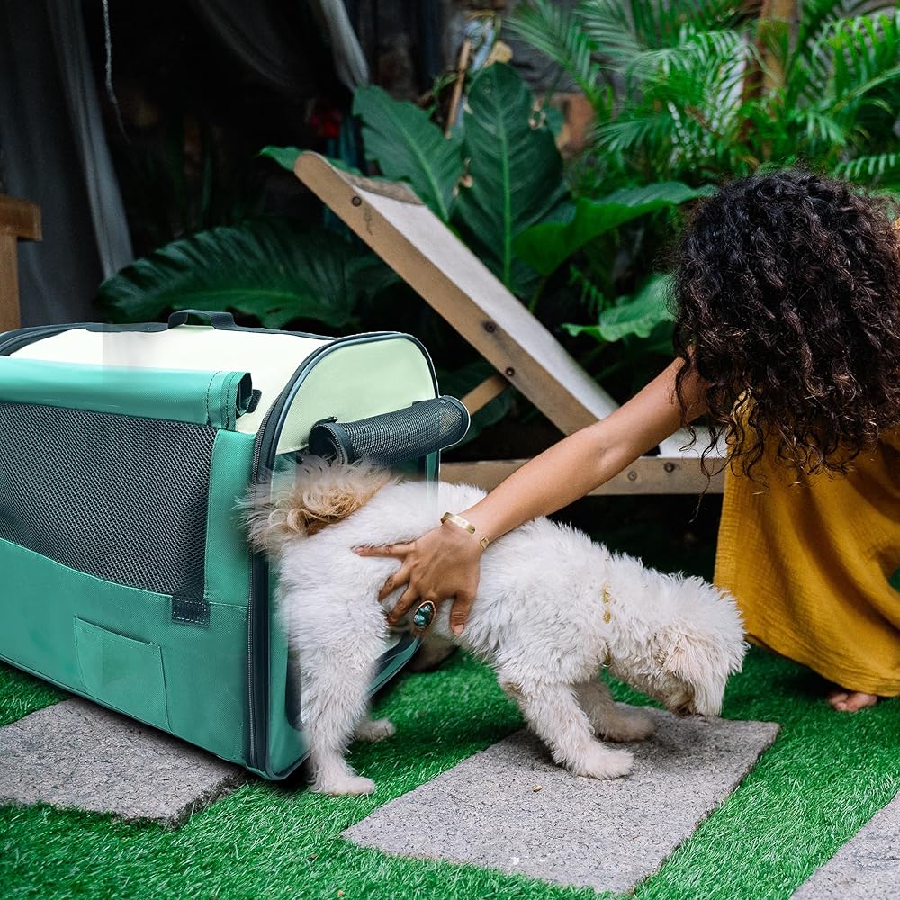 【Safety and Convenient】: A adjustable leash attached to your pup's collar and lockable zippers on the door can keep the pet secure inside. The handle on the top makes it more convenient to carry, and side pockets can put some snacks and toys