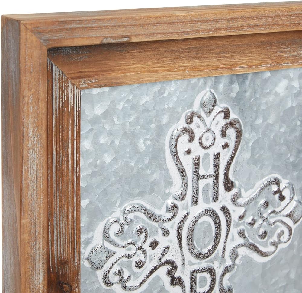 اجعل أي غرفة في منزلك أو مكتبك أكثر إشراقًا مع ديكور الحائط الديني هذا. من المؤكد أن الصليب المعدني المجلفن سيجلب الإلهام والإيمان إلى منزلك. كما أنها هدية ممتازة للعائلة والأصدقاء في أي مناسبة. الإطار مصنوع من لوح ليفي متوسط الكثافة ومواد خشبية. يبلغ مقاس ديكور الحائط المسيحي الجميل هذا 12 × 16 انش.