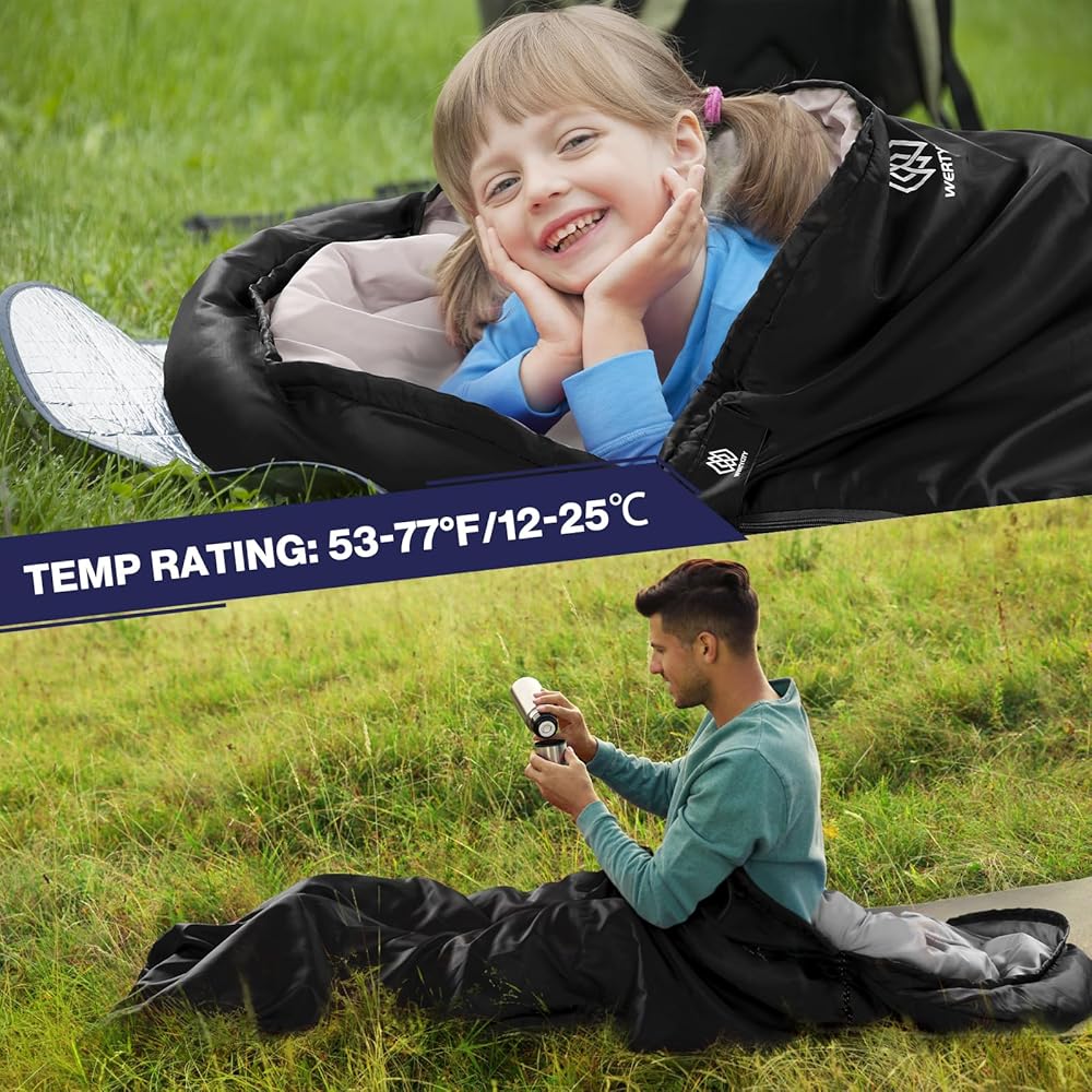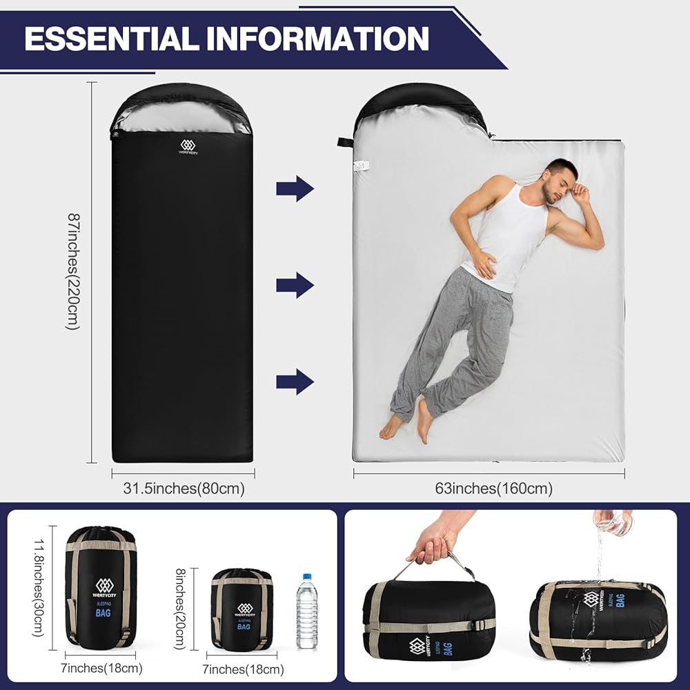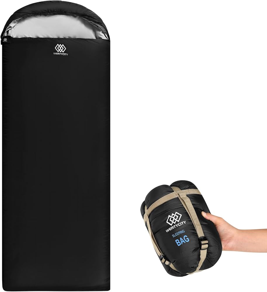 خفيفة الوزن وصغيرة الحجم للغاية - تزن حقيبة النوم الرقيقة هذه 2 رطل فقط، ويمكن ضغطها حتى ارتفاع 7.8 بوصة فقط وستشغل مساحة أقل. تعد حقيبة النوم المدمجة فائقة الخفة من WERTYCITY واحدة من أخف أكياس النوم وأكثرها تنوعًا على الإطلاق. السوق.