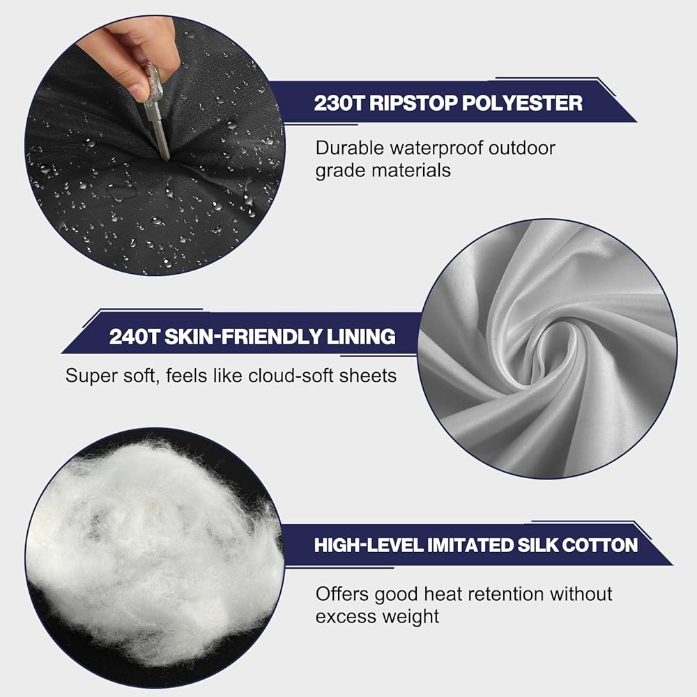 متين وسهل التنظيف - يستخدم غلافنا الخارجي المقاوم للماء نسيجًا متينًا يمكن غسله جيدًا بشكل لا يصدق. في حالة الاتساخ الشديد، تم تصميم كيس النوم للغسيل في الغسالة أيضًا، ويتم تعزيز الدرزات بشكل مزدوج، ويتم اختبار السحابات بدقة. ضمان سهولة الصيانة وطول العمر.