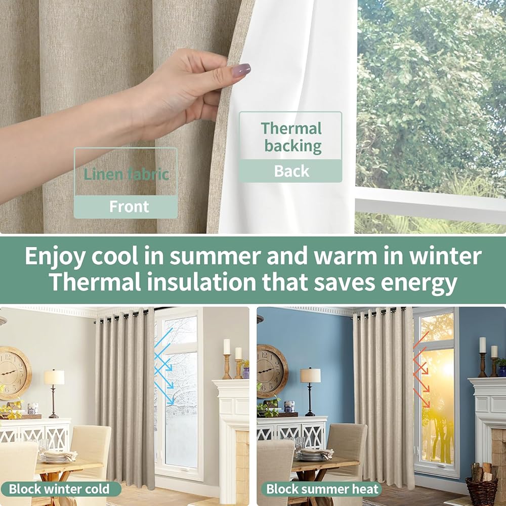 حافظ على راحة المنزل طوال العام ووفر المال على فواتير الطاقة: ستائر النوافذ المعزولة حراريًا هذه أكثر كثافة وأكثر سمكًا للحفاظ على درجة حرارة الغرفة عن طريق حجب الحرارة في الصيف والبرودة في الشتاء، وهي مثالية لتوفير الطاقة. اخلق جوًا مريحًا ومريحًا مع هذه الستائر الحرارية المصنوعة من الكتان، واستمتع بوقت التوقف عن العمل بأناقة وحياة مريحة.