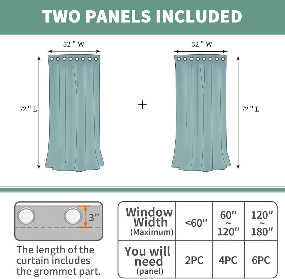 ستائر تعتيم 100% من الكتان المتين وسهلة العناية: مقاسنا 52 × 63 بوصة مخصص لكل لوحة عندما تكون مفتوحة بالكامل، ونوصي بعرض ضعف حجم نافذتك للحصول على تغطية كاملة وكاملة. قبل طلب الستائر، تأكد من قياس طول وعرض نافذتك! يمكن غسله في الغسالة بماء بارد، والتجفيف بالمجفف على درجة حرارة منخفضة، ولا تستخدم المبيضات. تبخير الحديد على جانب الوجه حسب الحاجة.